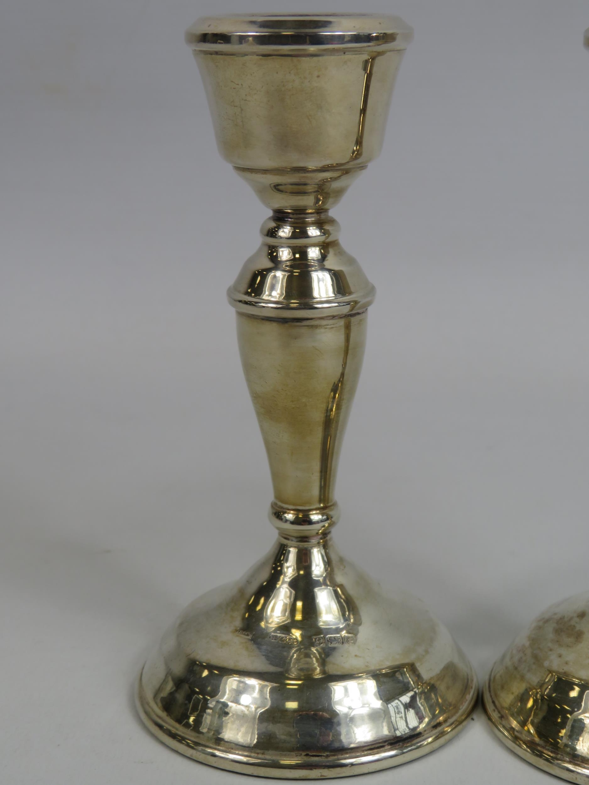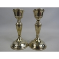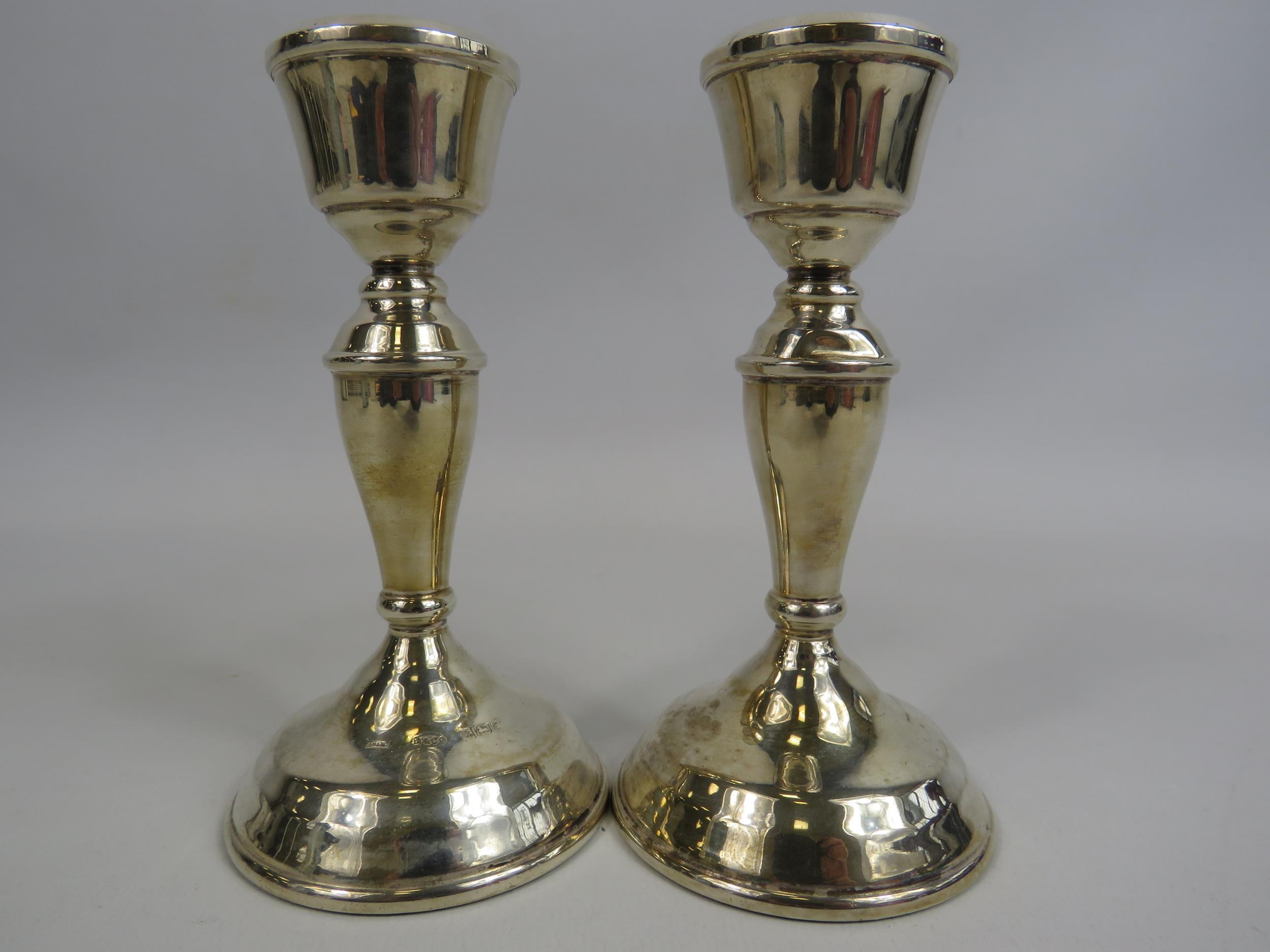 Pair of sterling silver weighted candlesticks 5 1/4" tall by W I Broadway and co Birmingham 1979.