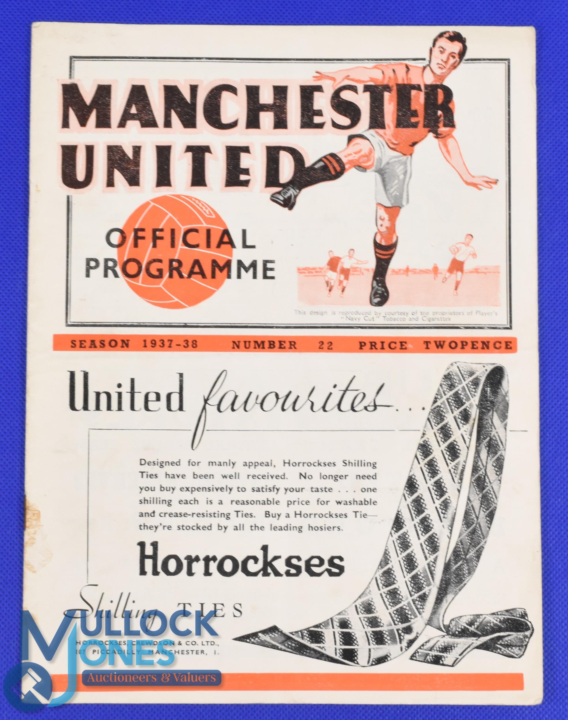 Pre-War 1937/1938 Manchester Utd v Burnley Div. 2 match programme 18 April 1938; overall fair/good. (1)