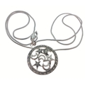 A lovely marcasite silver pendant (3cm approx), and chain (40cm approx) decorated with stars and moons