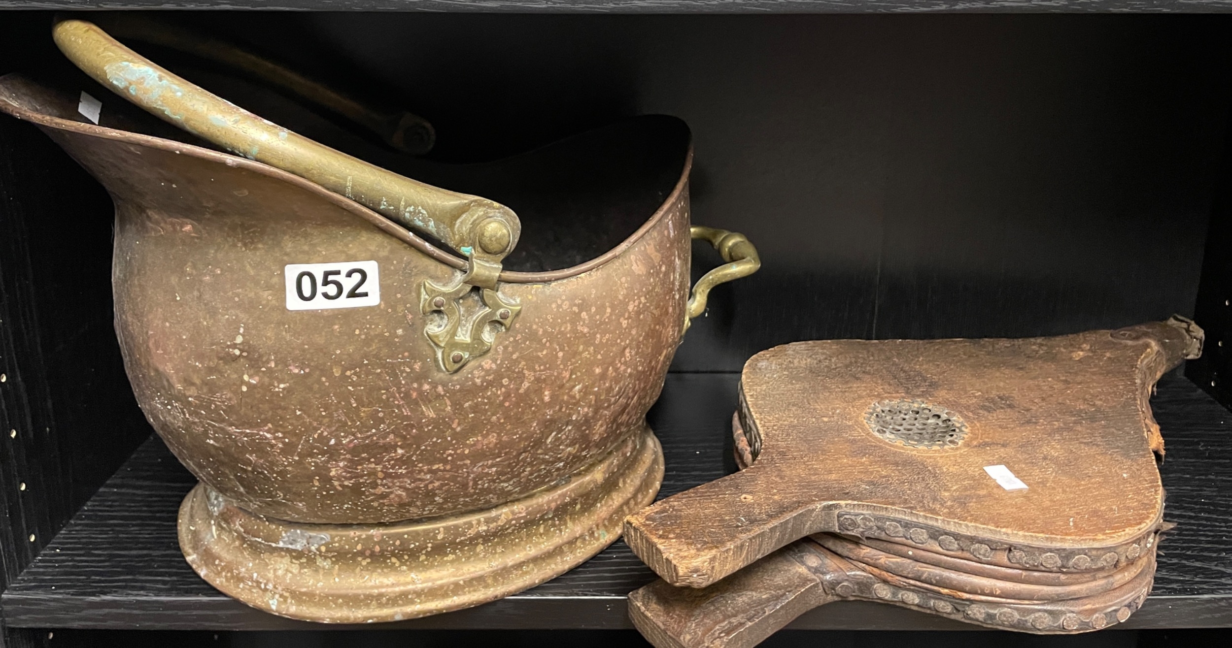 Coal scuttle, Bellows, pan and brush