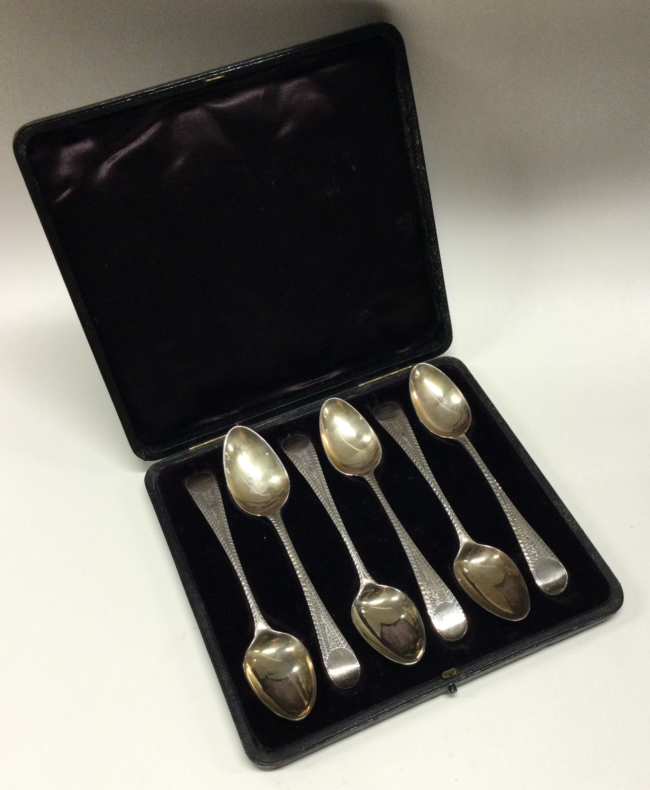 A George III set of six silver feather edged spoons. London 1918. By Thomas Newby. Approx. 120 grams. Est. £80 - £120.