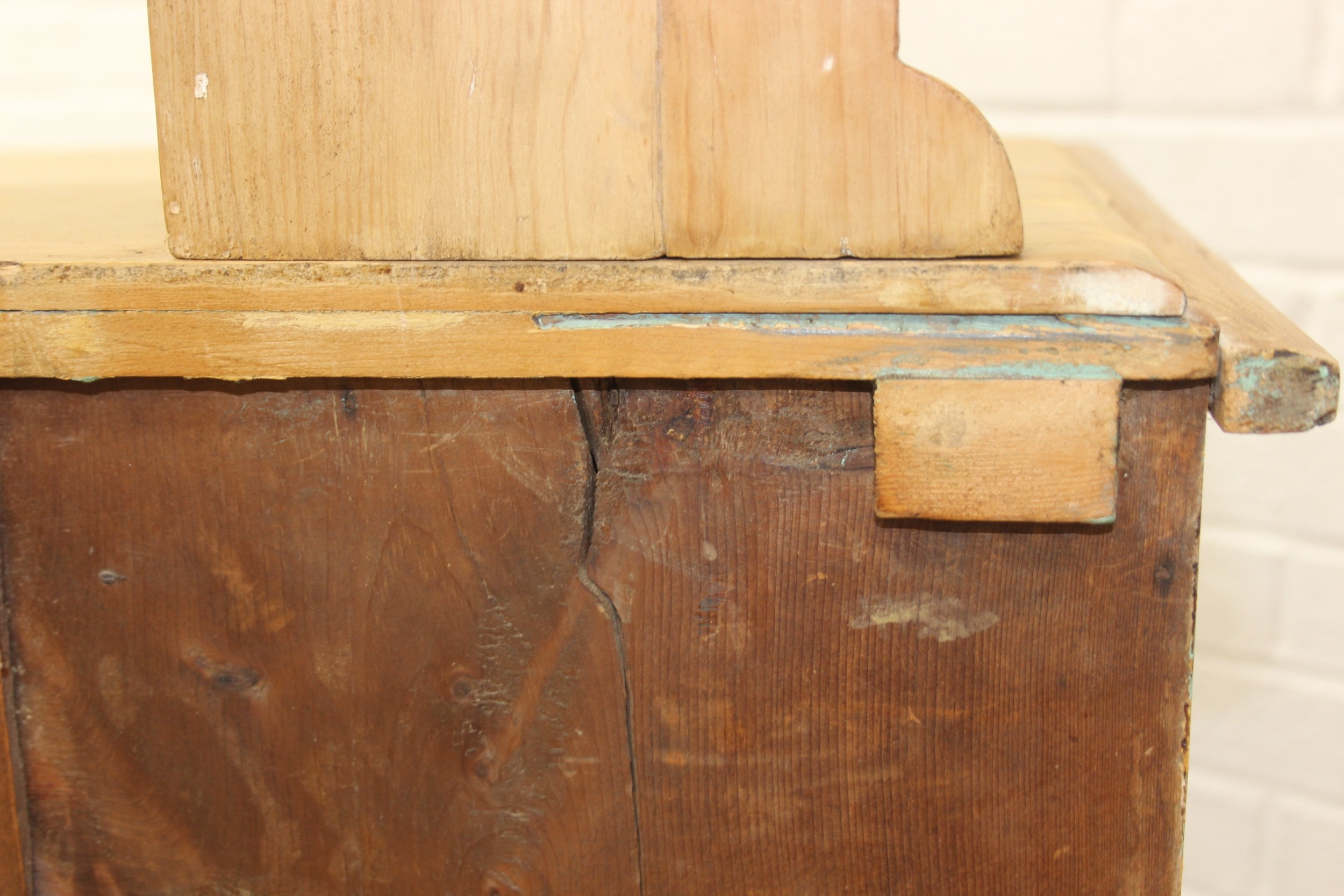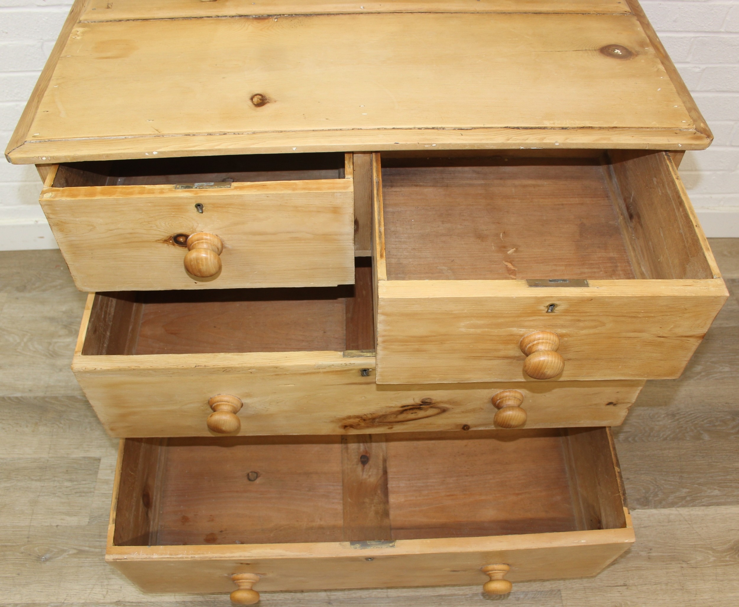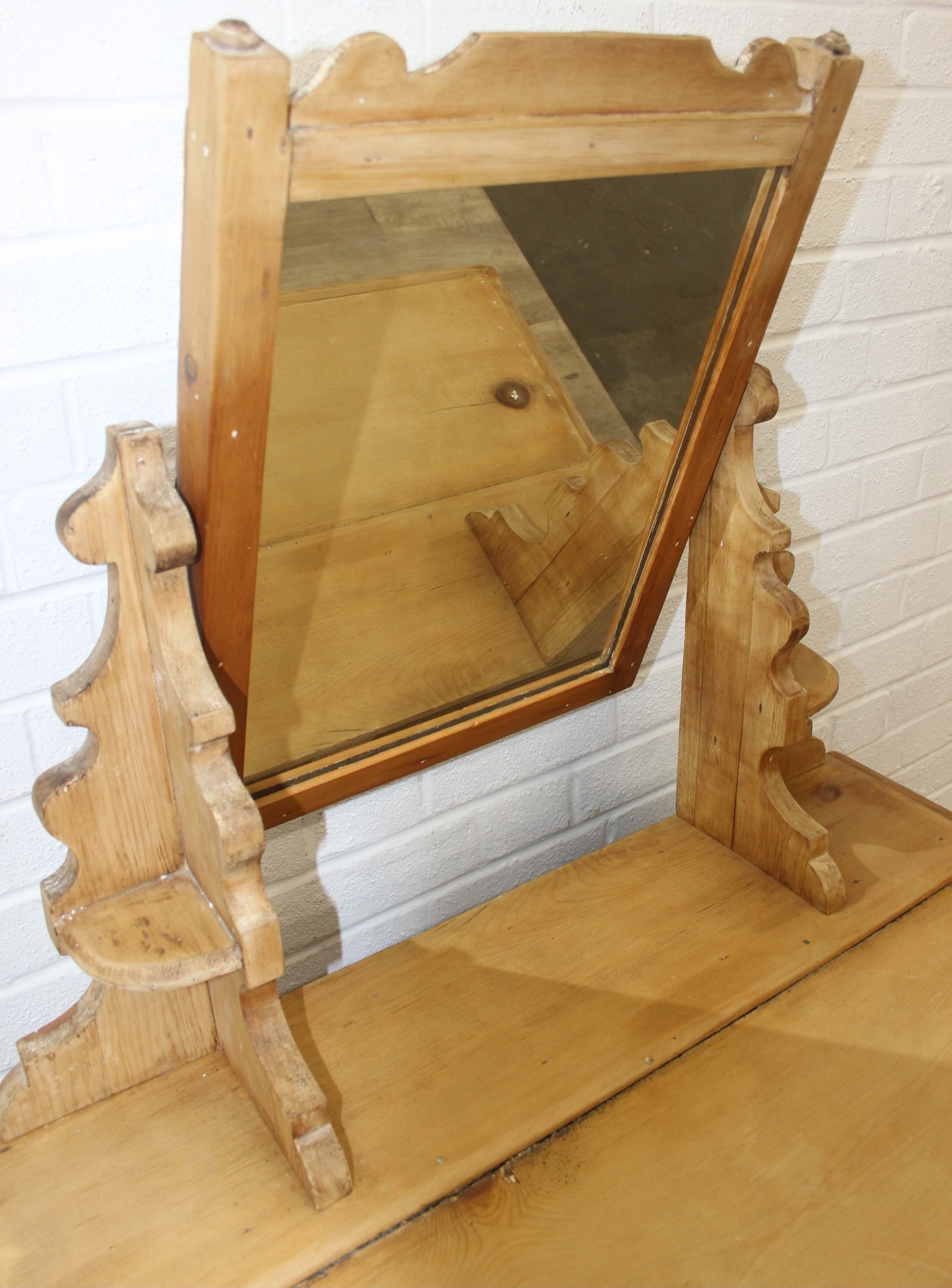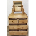 A Victorian pine dressing chest with mirror top and two over two drawers to base, 88cm x 51cm x 152cm