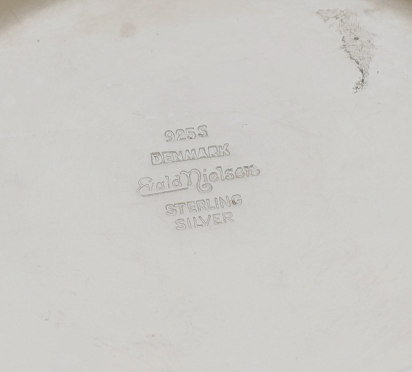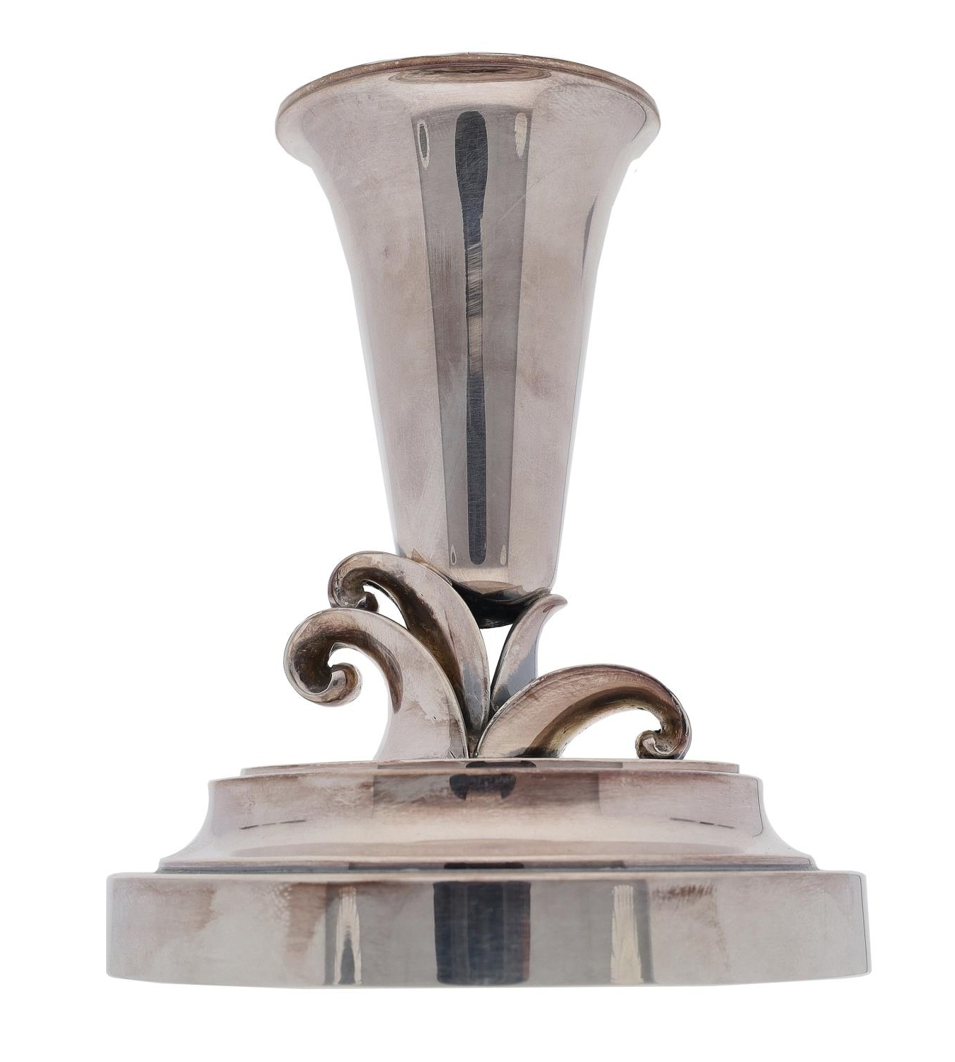 Modern Danish silver candlestick, the support raised on stylised leaf scrolls and a circular stepped base, maker Evald Nielsen, marked Denmark Sterling Silver 925S, 4.25" high, 260gm