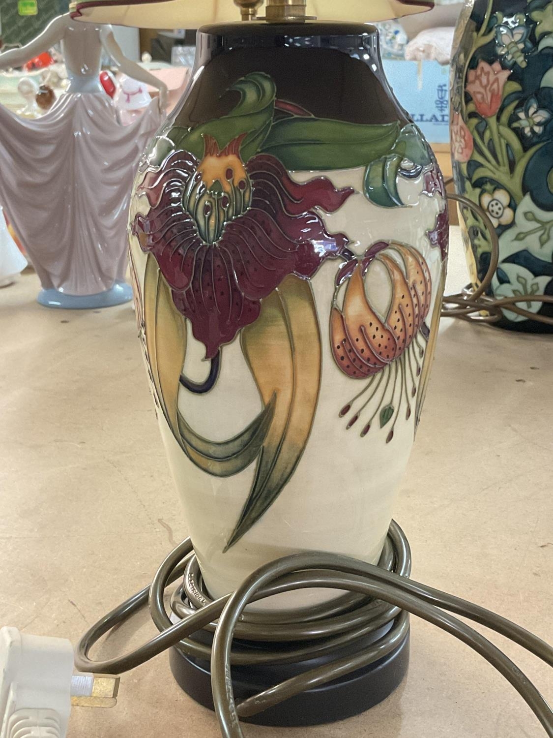 A Moorcroft Anna Lily lamp and shade.