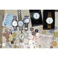 A SELECTION OF COINS AND WATCHES, the watches include three ...