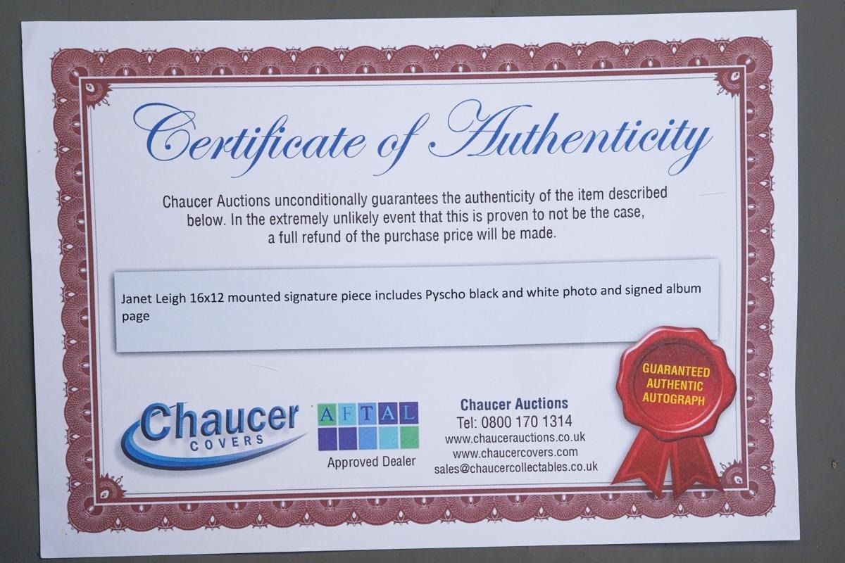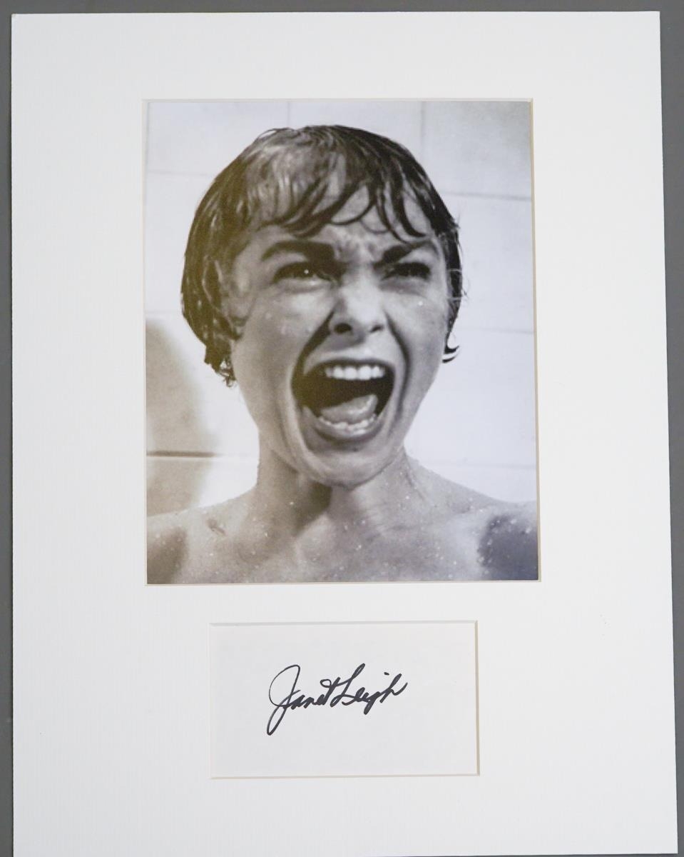 Autograph: Janet Leigh, a black and white [16x12] Shower Scene photograph from Pyscho and signed album page, mounted, unframed [1]