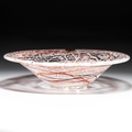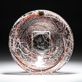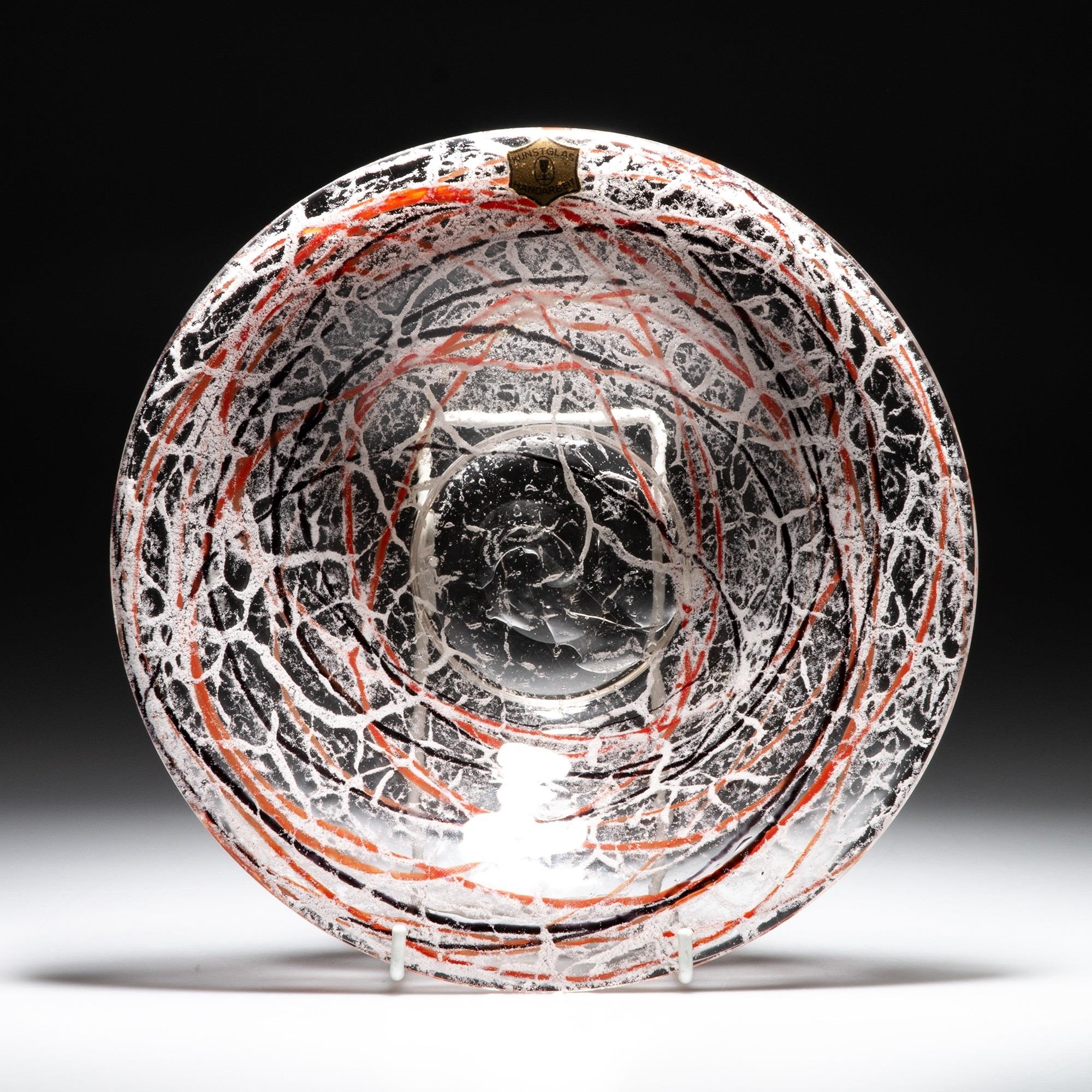 circular, colourless with red, black and white throughout, with a paper label reading 'KUNSTGLAS HANDARBEIT'. 25.2cm diameter