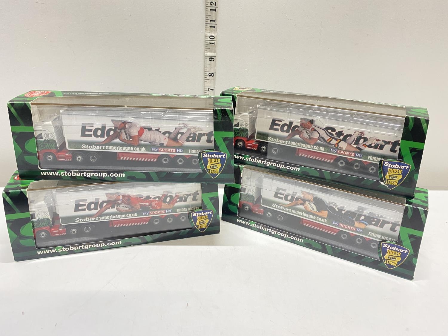 Four Stobart boxed Rugby League themed die-cast truck models