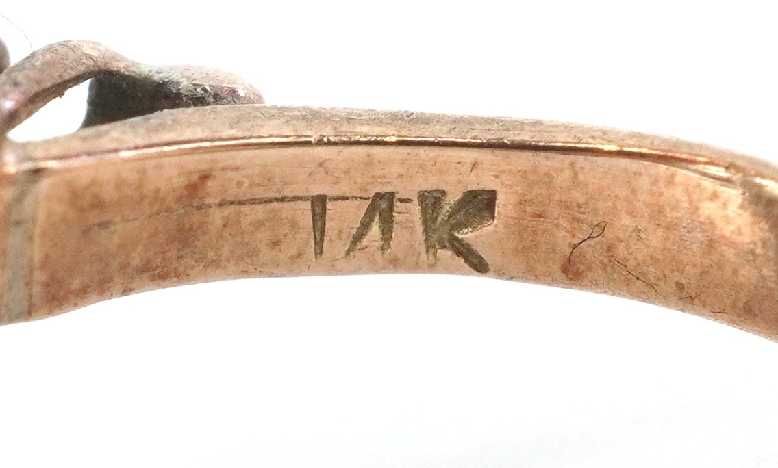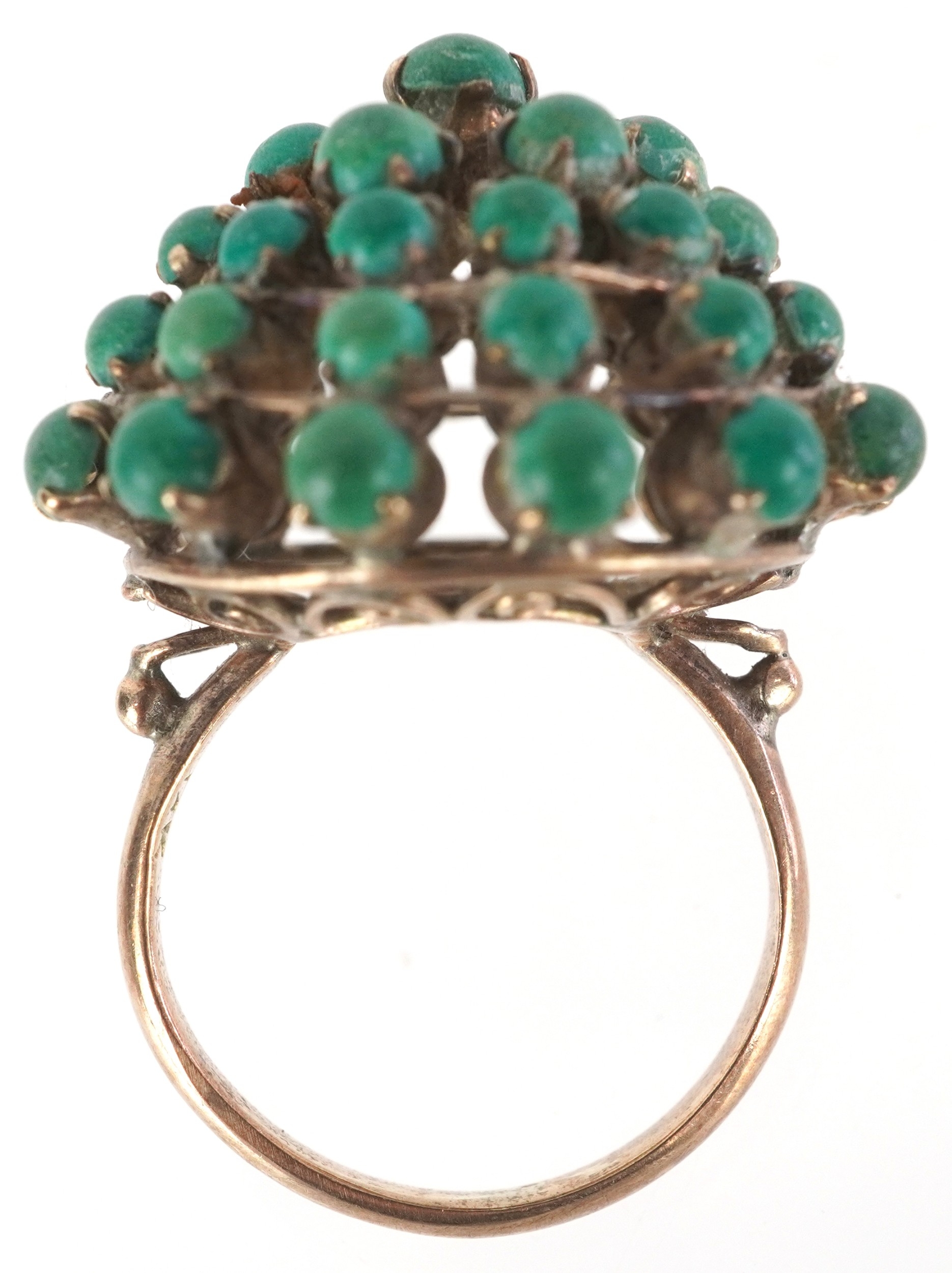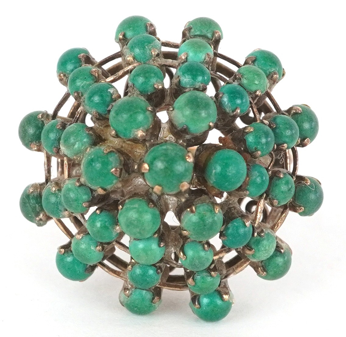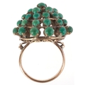 A 14K gold green stone five tier cluster ring, size H, 5.0g.