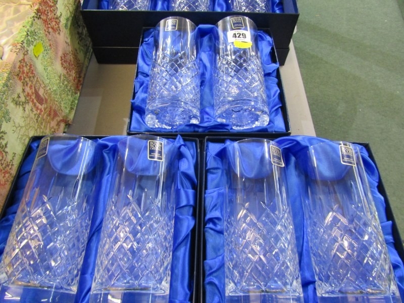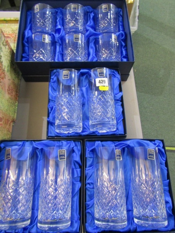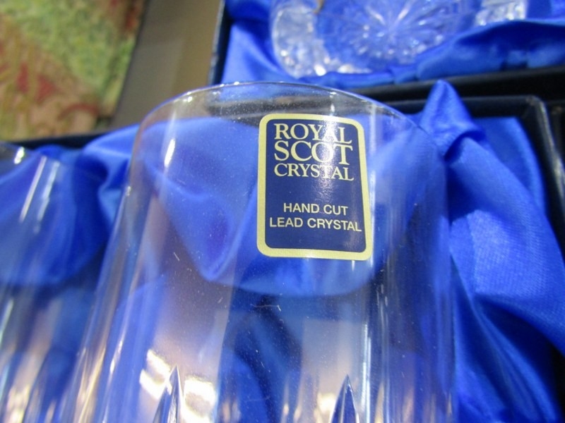 ROYAL SCOT CRYSTAL, 3 pairs of boxed high ball glasses, together with a boxed set of 6 Royal Scot whisky glasses