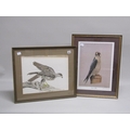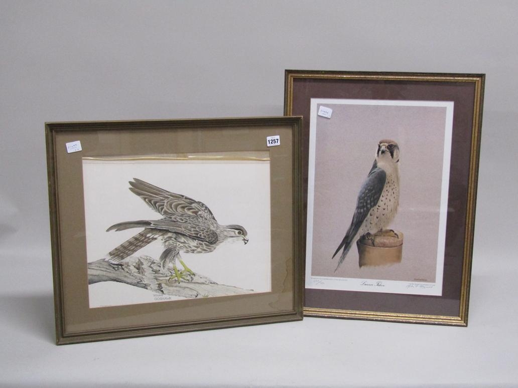 TWO FRAMED COLOURED PRINTS - YOUNG GOSHAWK & LANNAR FALCON (SIGNED HAYWOOD), F/G