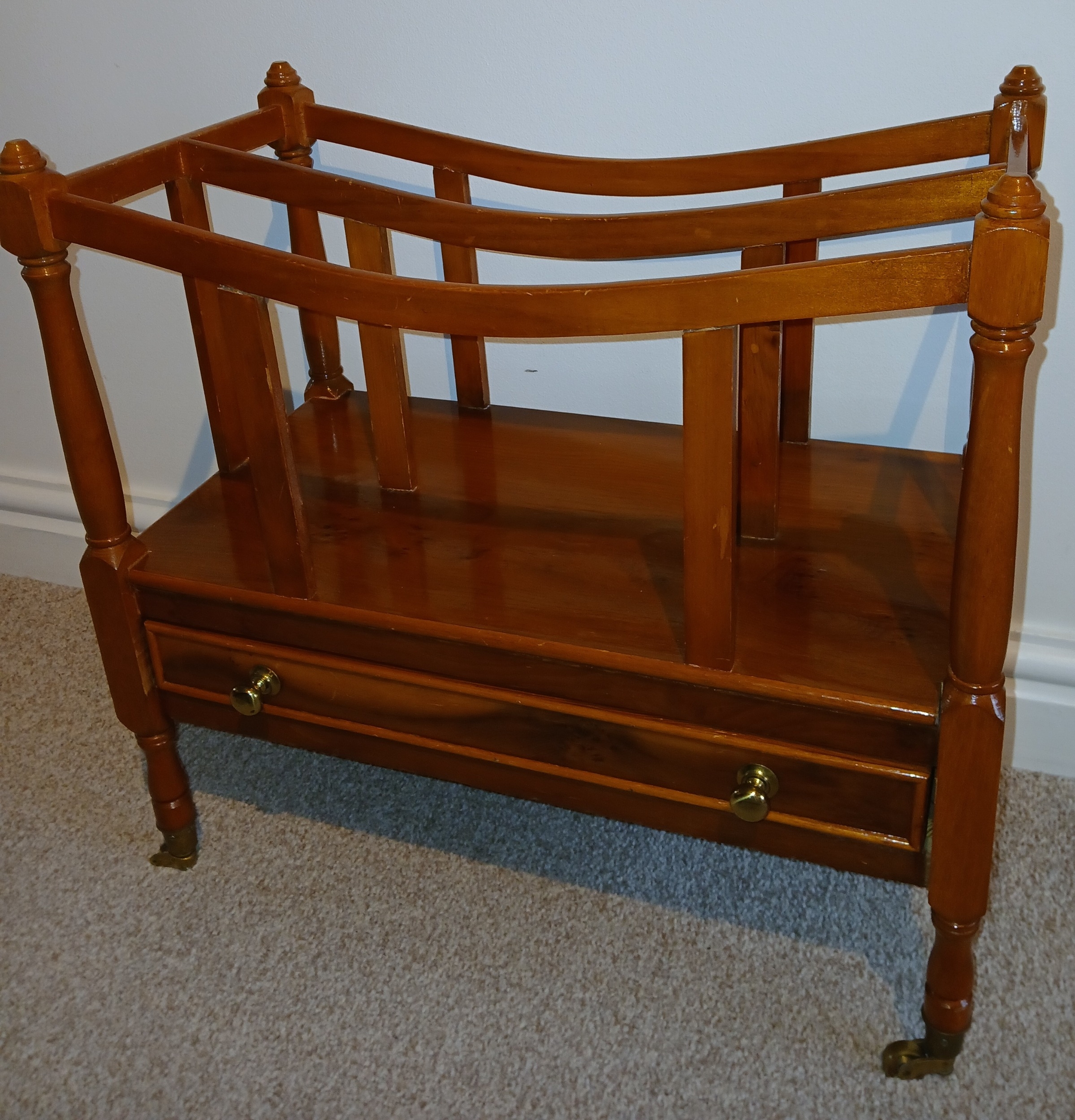 THSI ITEM IS NOT HELD BY PFW. A Canterbury with drawer and castors, 47cm x 25cm x 46 cm. COLLECTION FROM RH4 (Dorking)