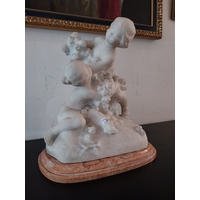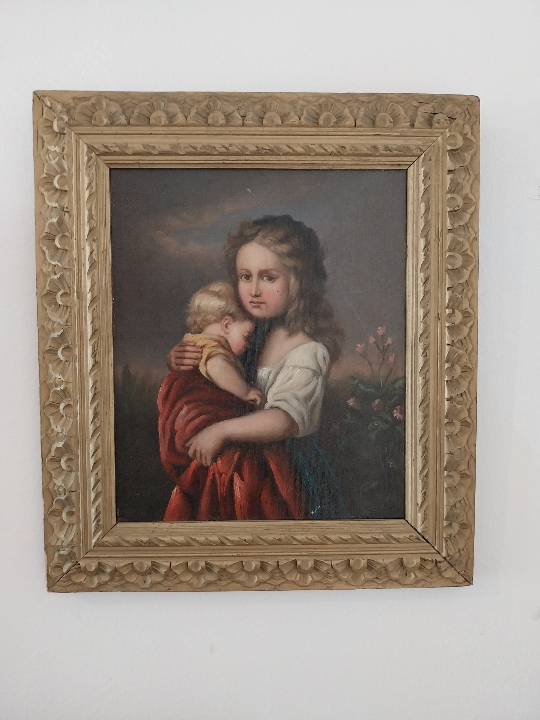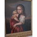 E de Lonza, Children. 19th C. Oil on Canvas mounted in a carved gilded frame. { 34cm H X 31cm W }.