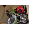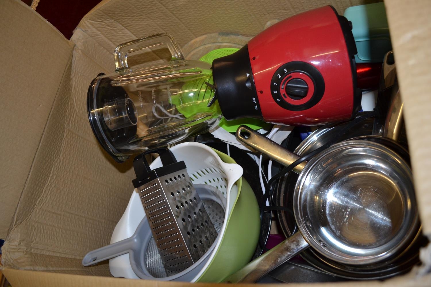 SET OF 5 GRADUATED STAINLESS STEEL SAUCEPANS, LIQUIDISER, COOKING UTENSILS, ETC