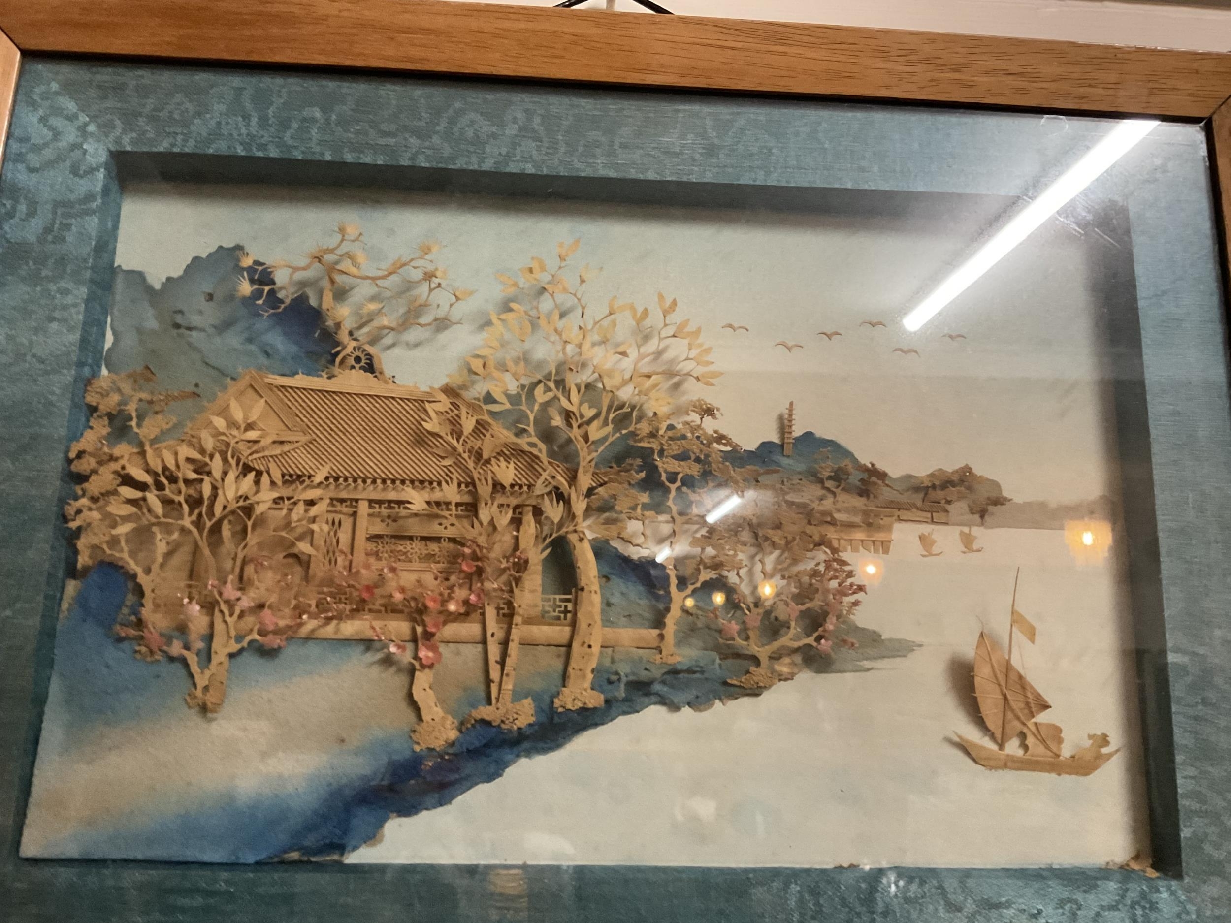 PAIR OF FRAMED ORIENTAL STYLE PICTURES15 X 11"