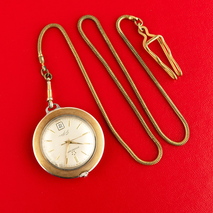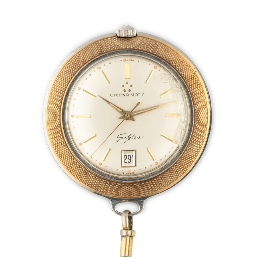 ETERNA MATIC, OROLOGIO DA TASCA DA GOLF, CON CATENA, SVIZZERA 1960 CIRCA