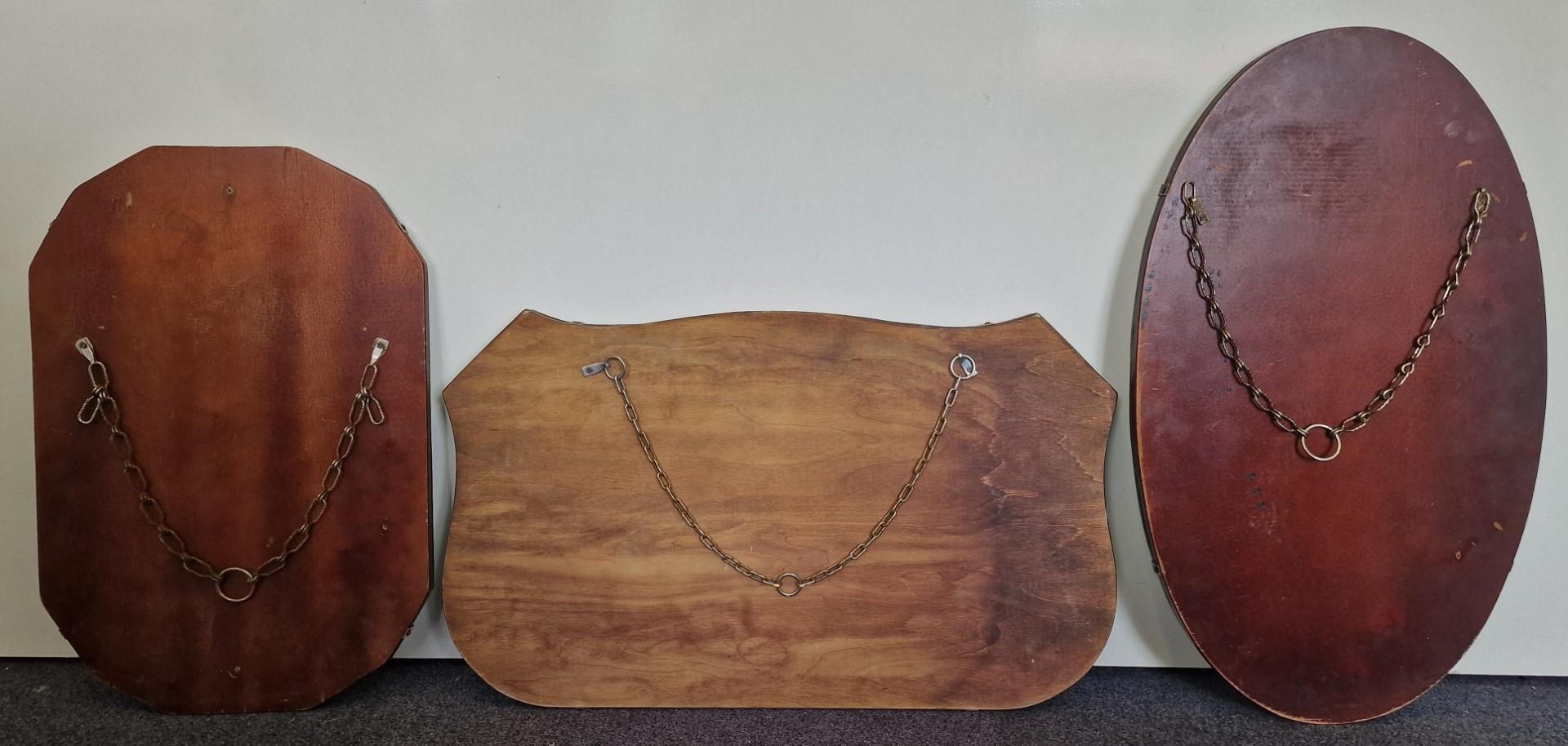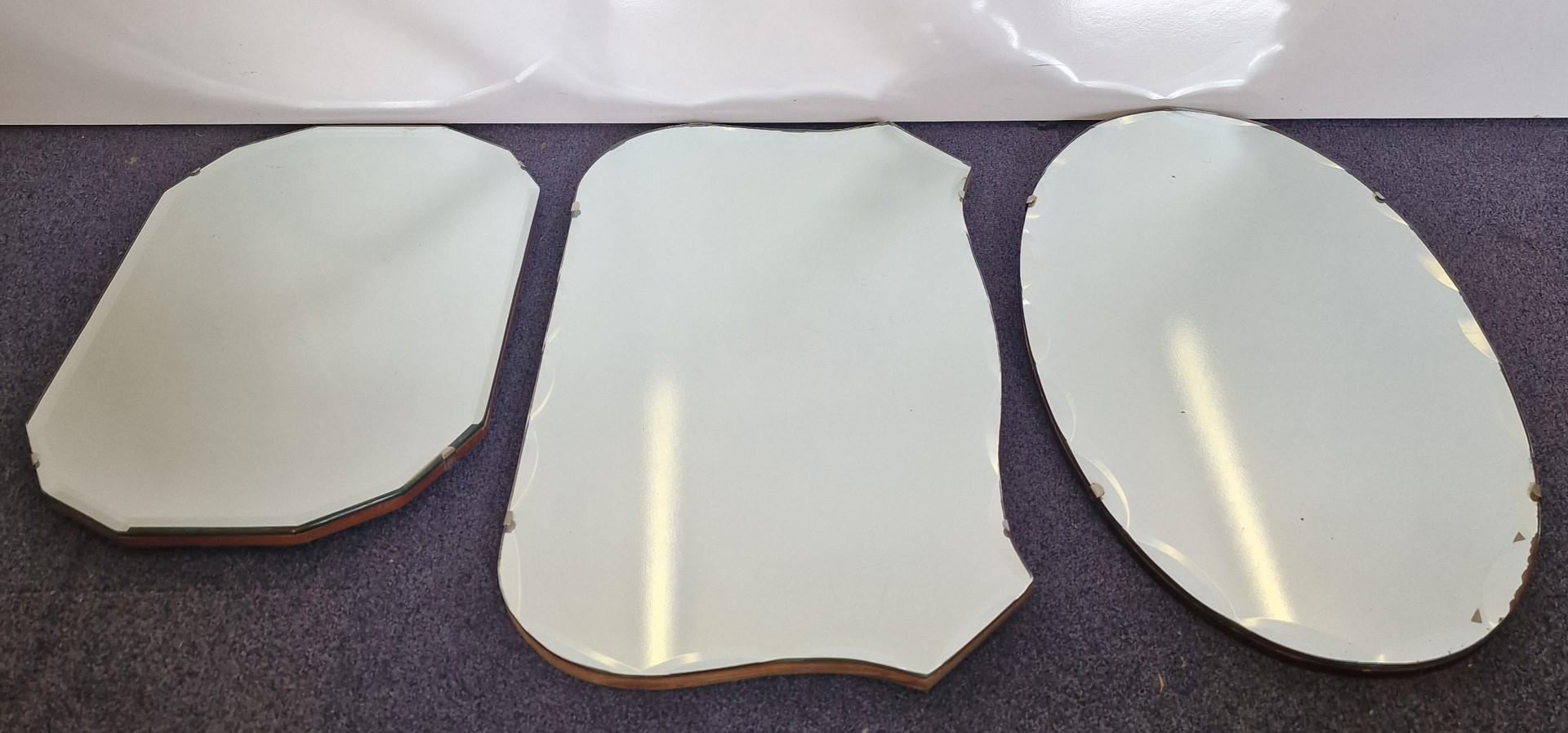 A collection of three vintage hanging mirrors, in different styles/shapes. Dimensions(cm) 55x33, 33x55, 45x30.
