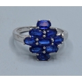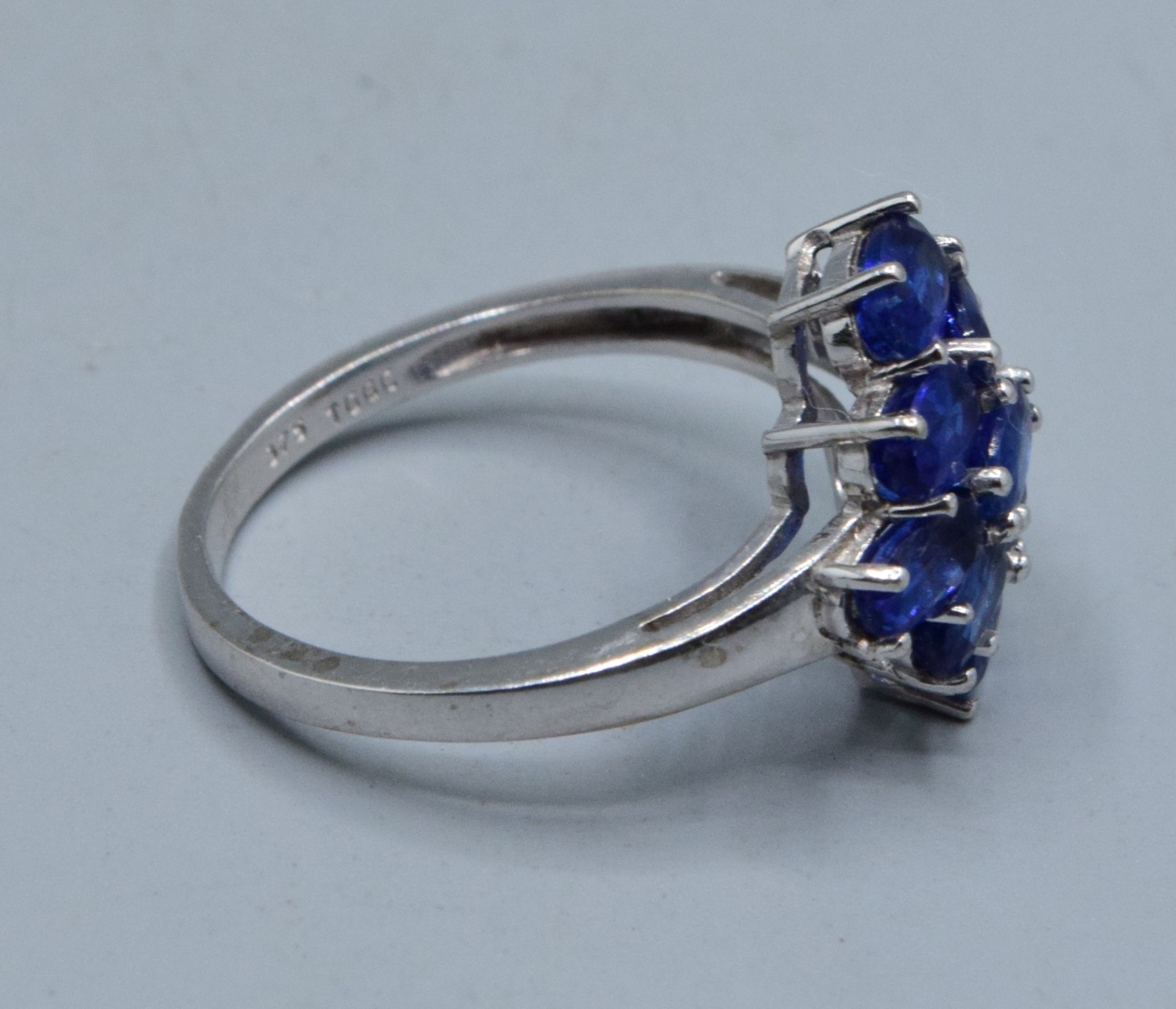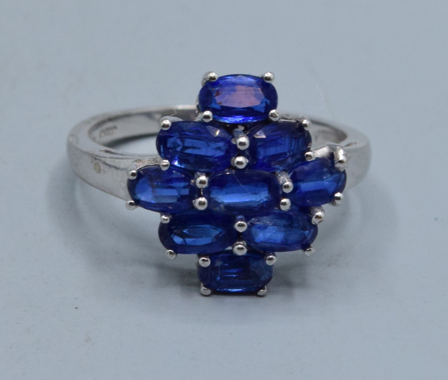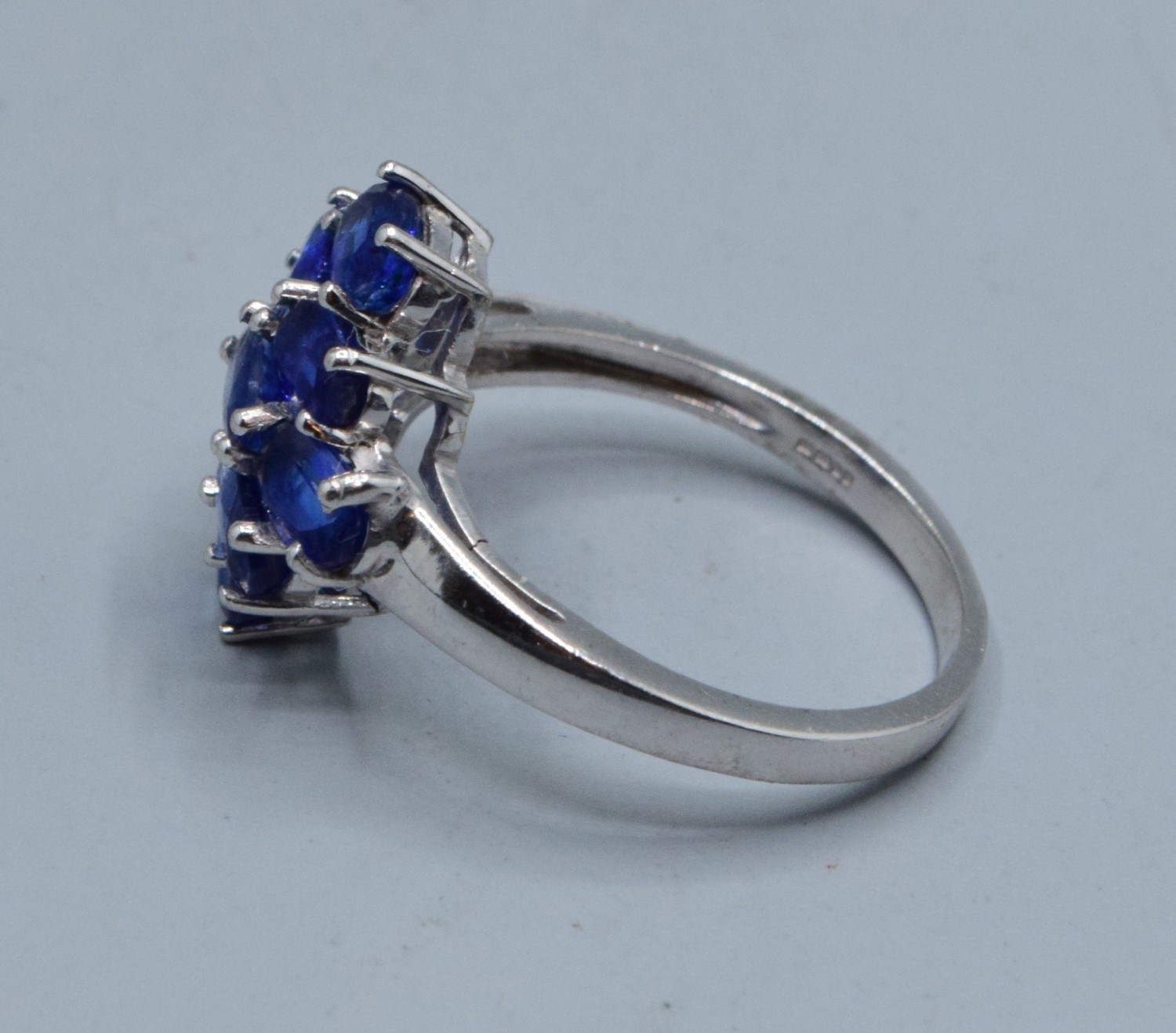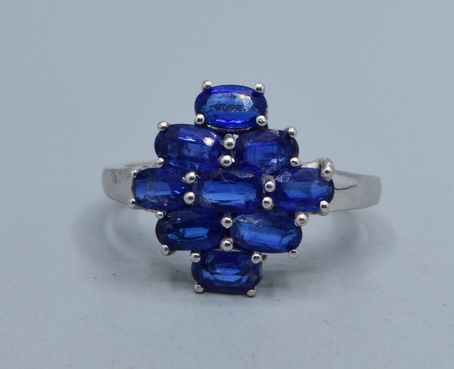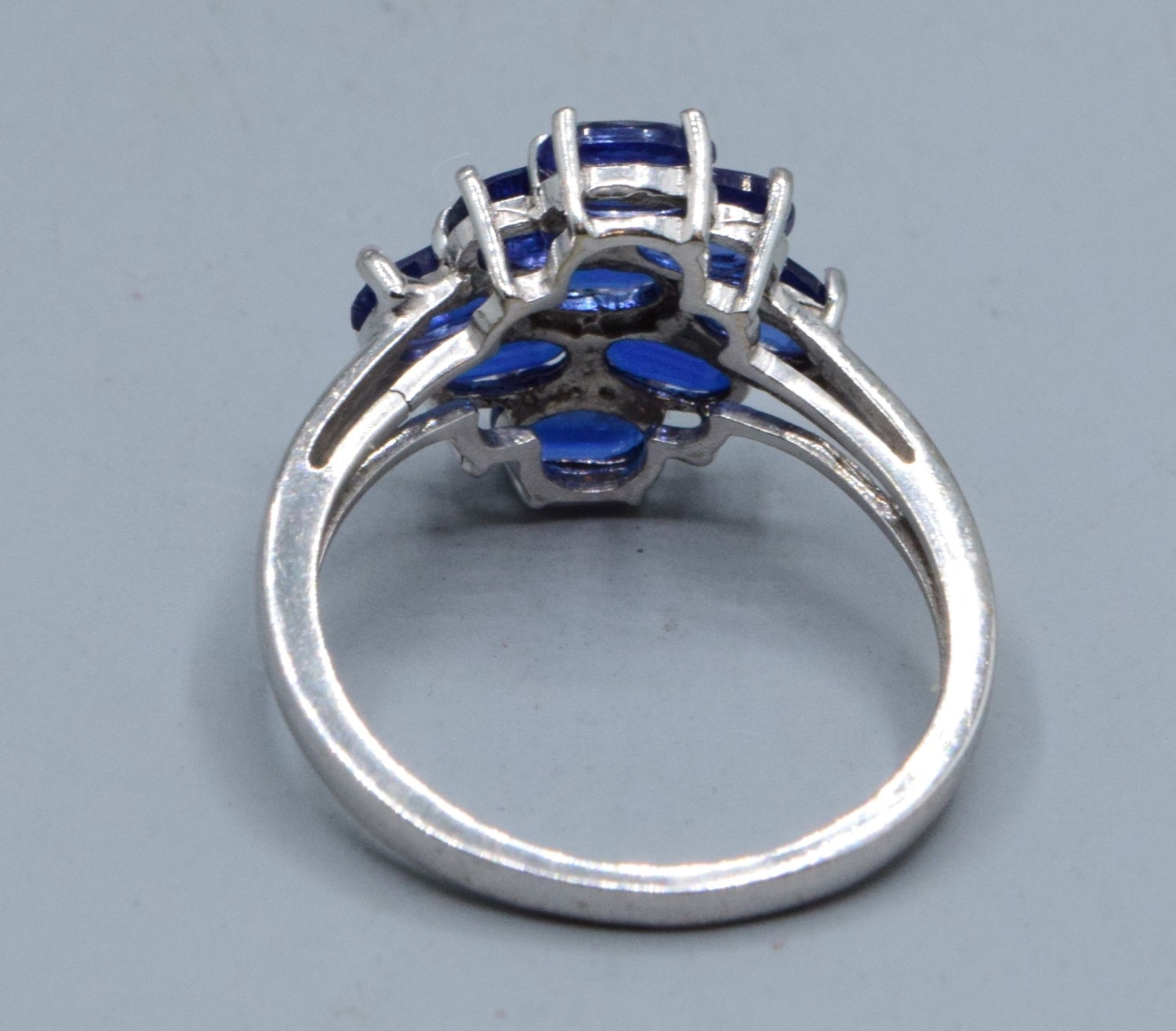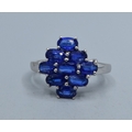 9ct white gold ladies Sapphire marquise shape cluster ring head being 14x14mm size N, 3.0grams