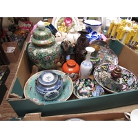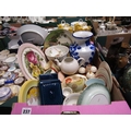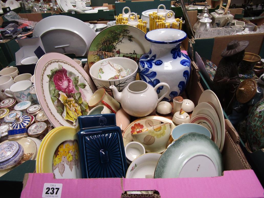BOX OF MIXED CERAMICS - ART POTTERY, SHELLEY ETC