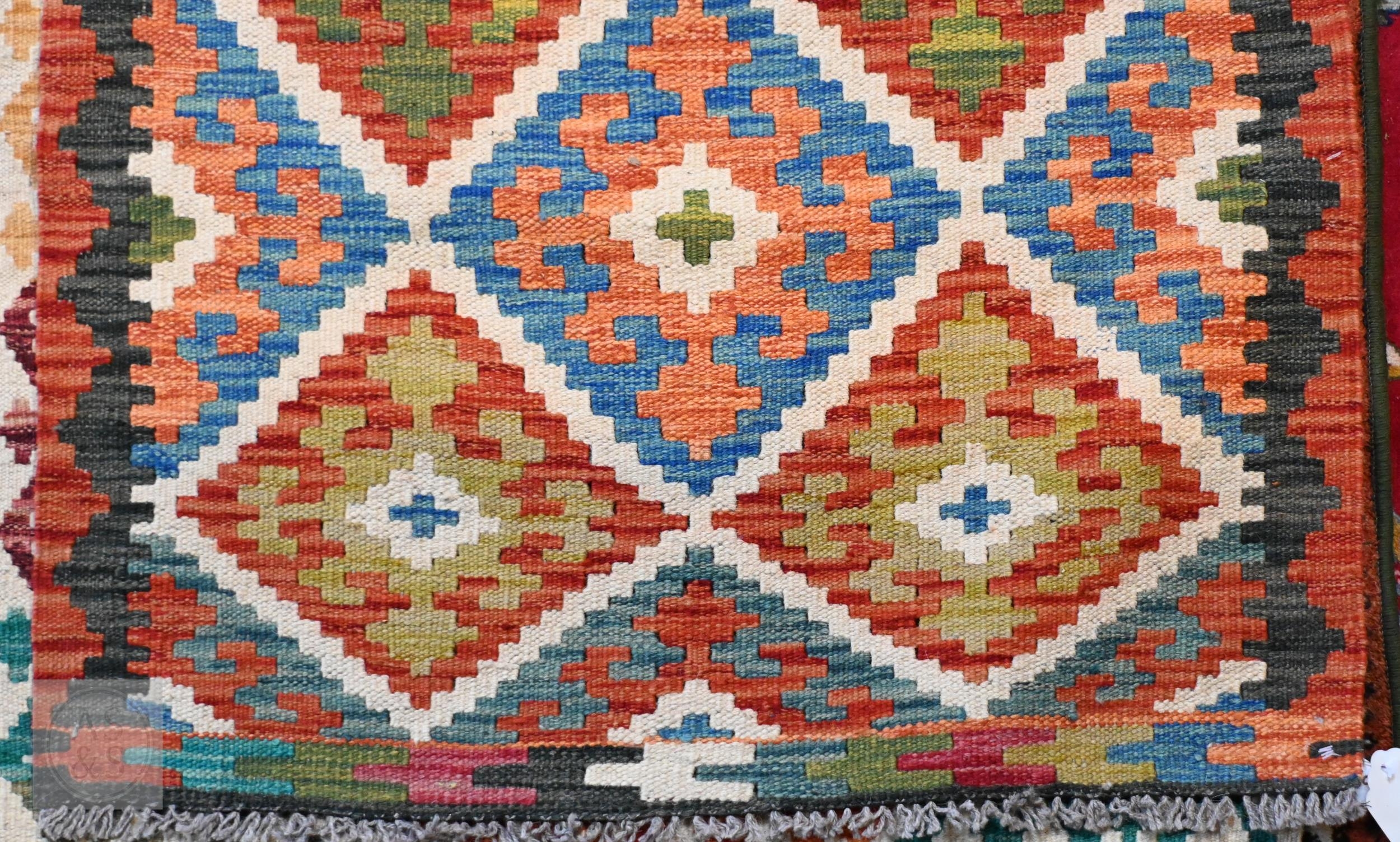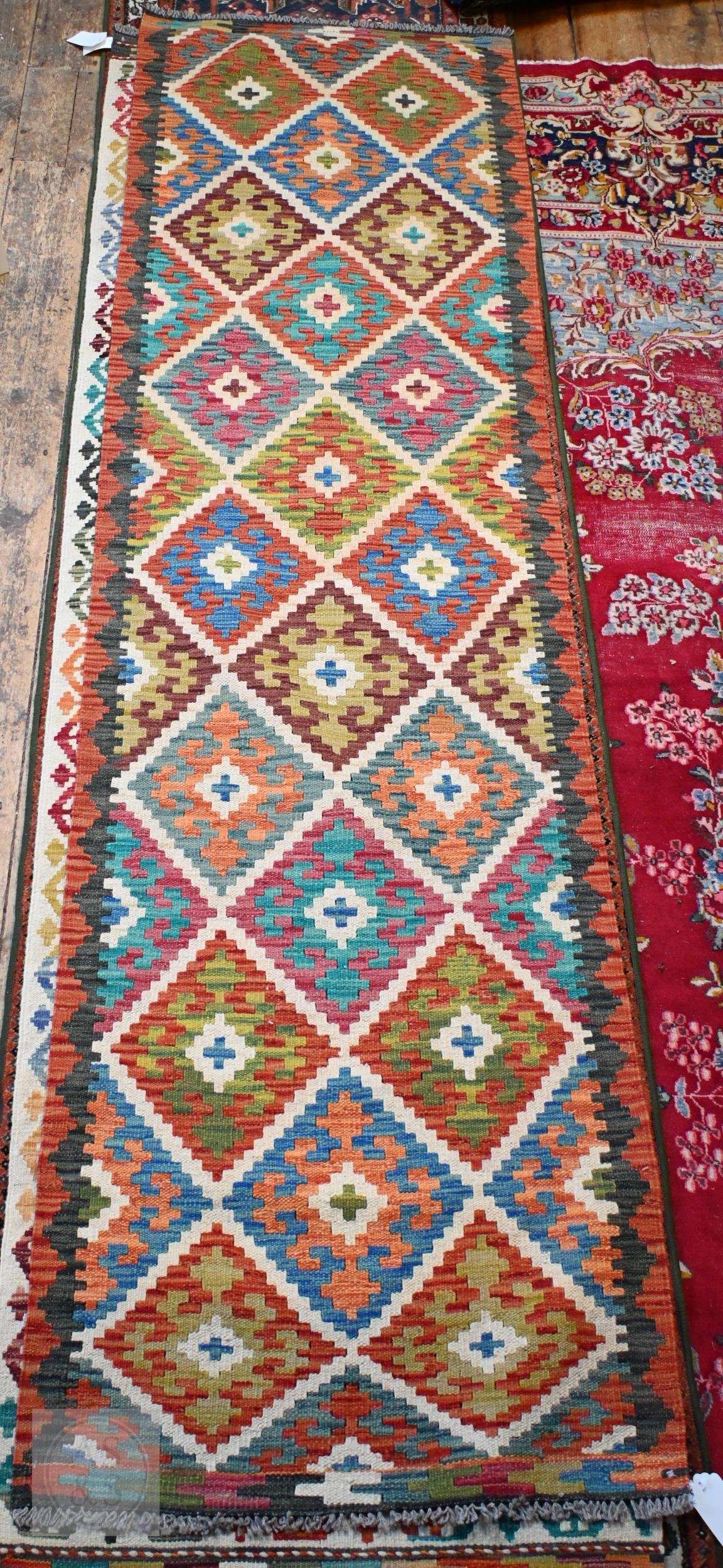 A contemporary Afghan Kelim runner, the overall diamond deign in multi-colours, 288 cm x 78 cm