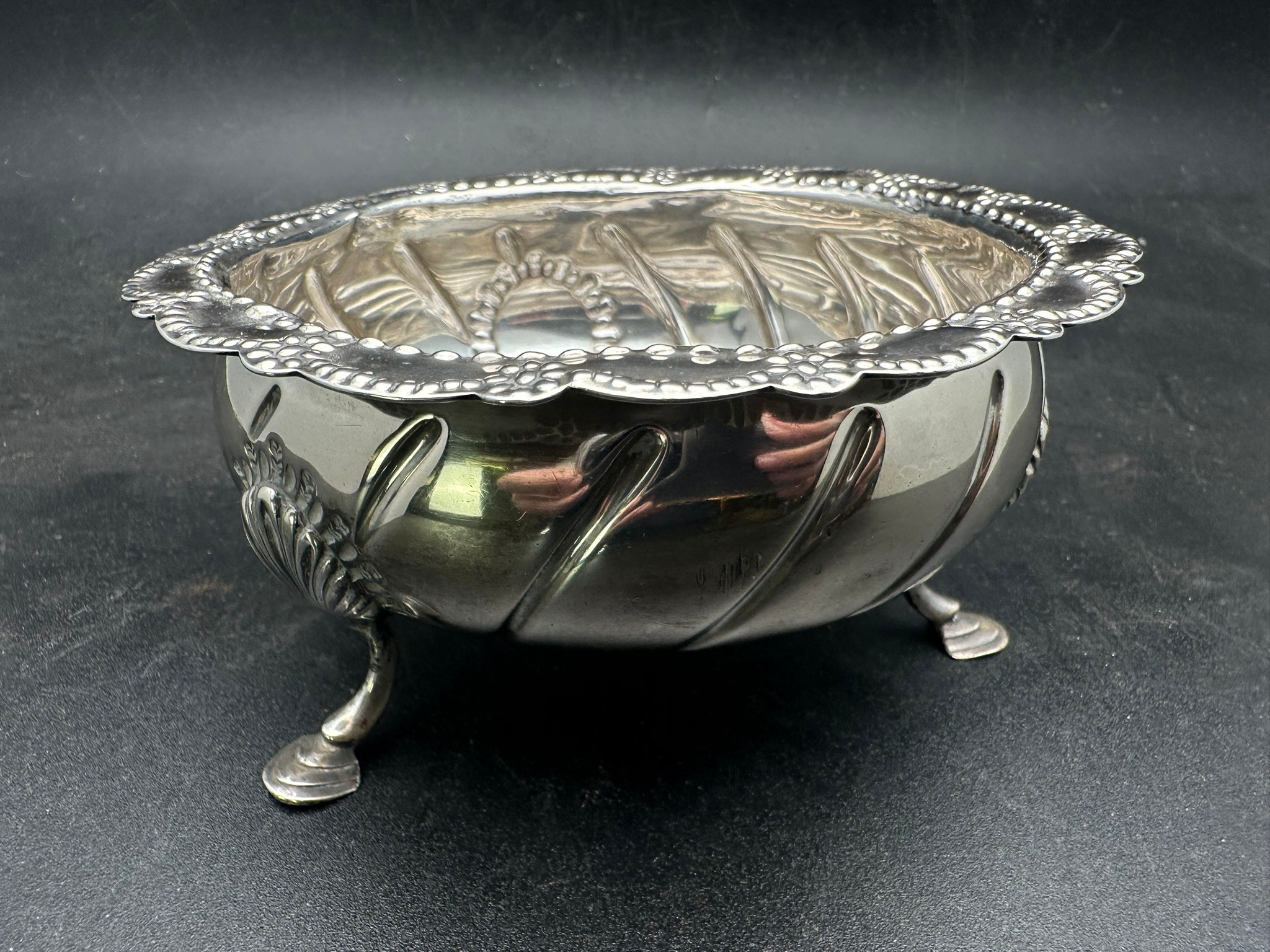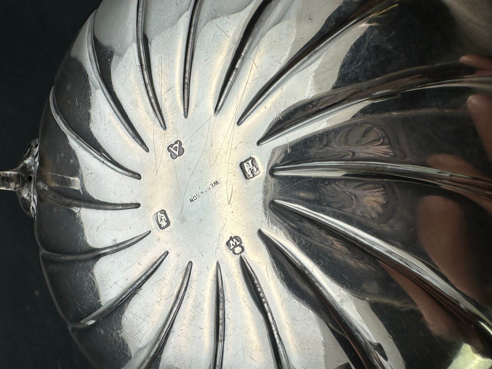 Irish Provincial silver sugar bowl by West and Son, very good condition, swirl fluted body raised on three shell knuckle stepped hoof foot. 205gms, Dublin, 1916