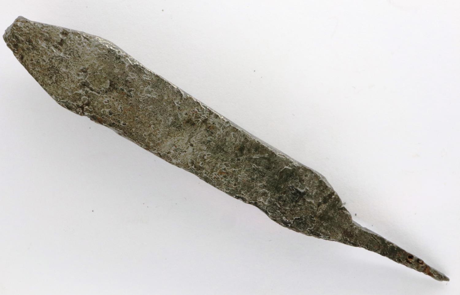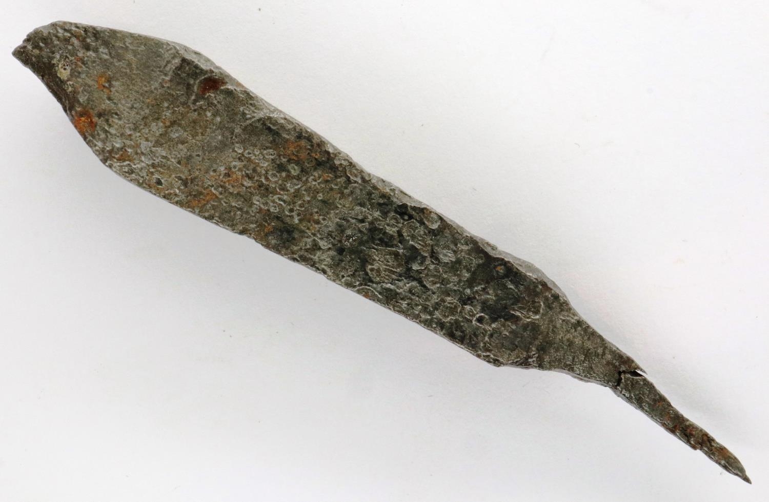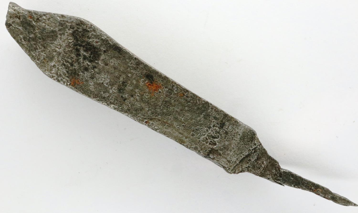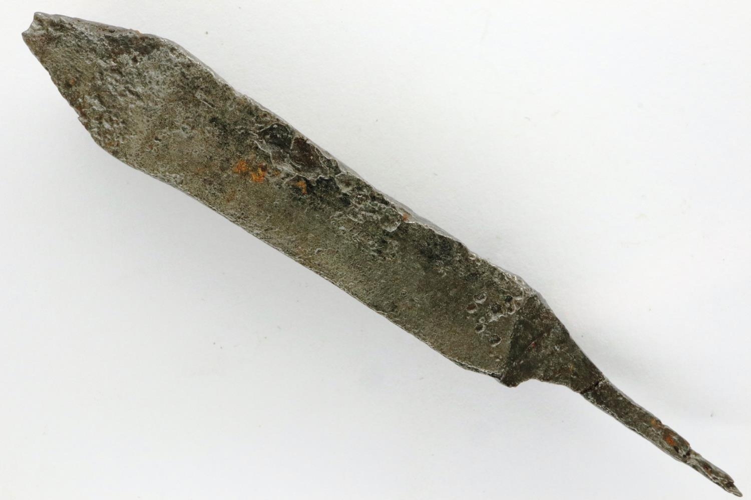 Medieval heavy iron crossbow bolt, L: 85 mm. P&P Group 0 (£5+VAT for the first lot and £1+VAT for subsequent lots)