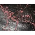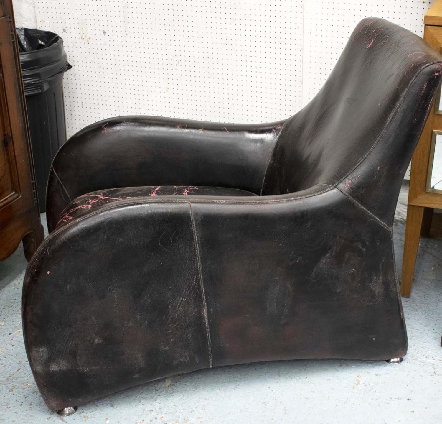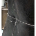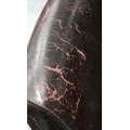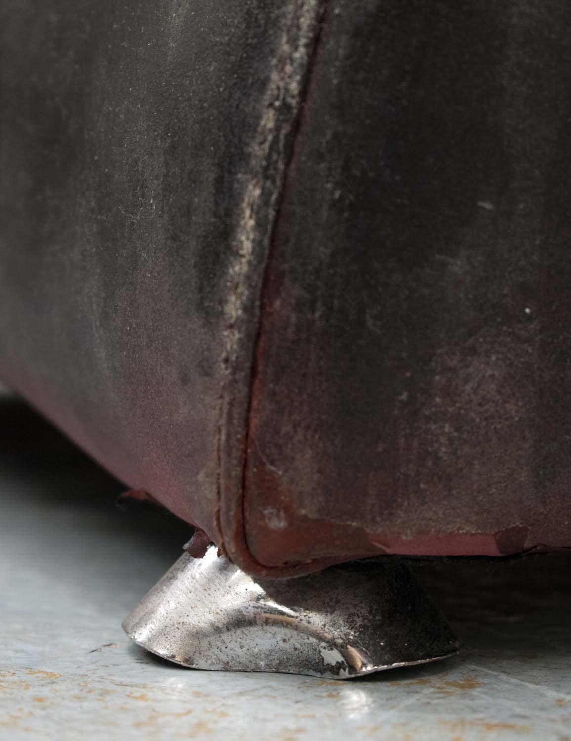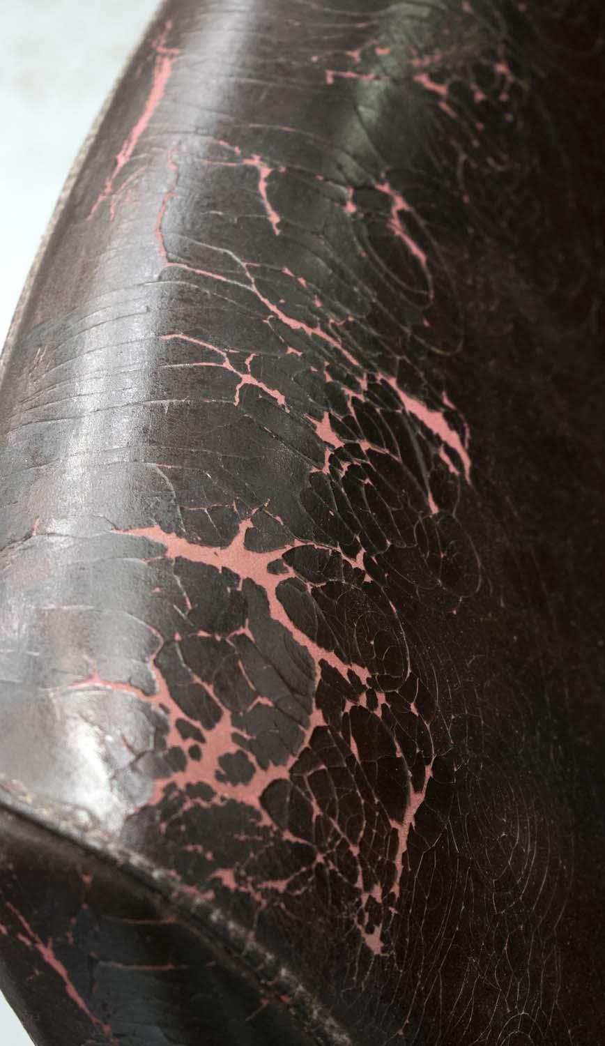 with faults, deteriorating black finish on red leather