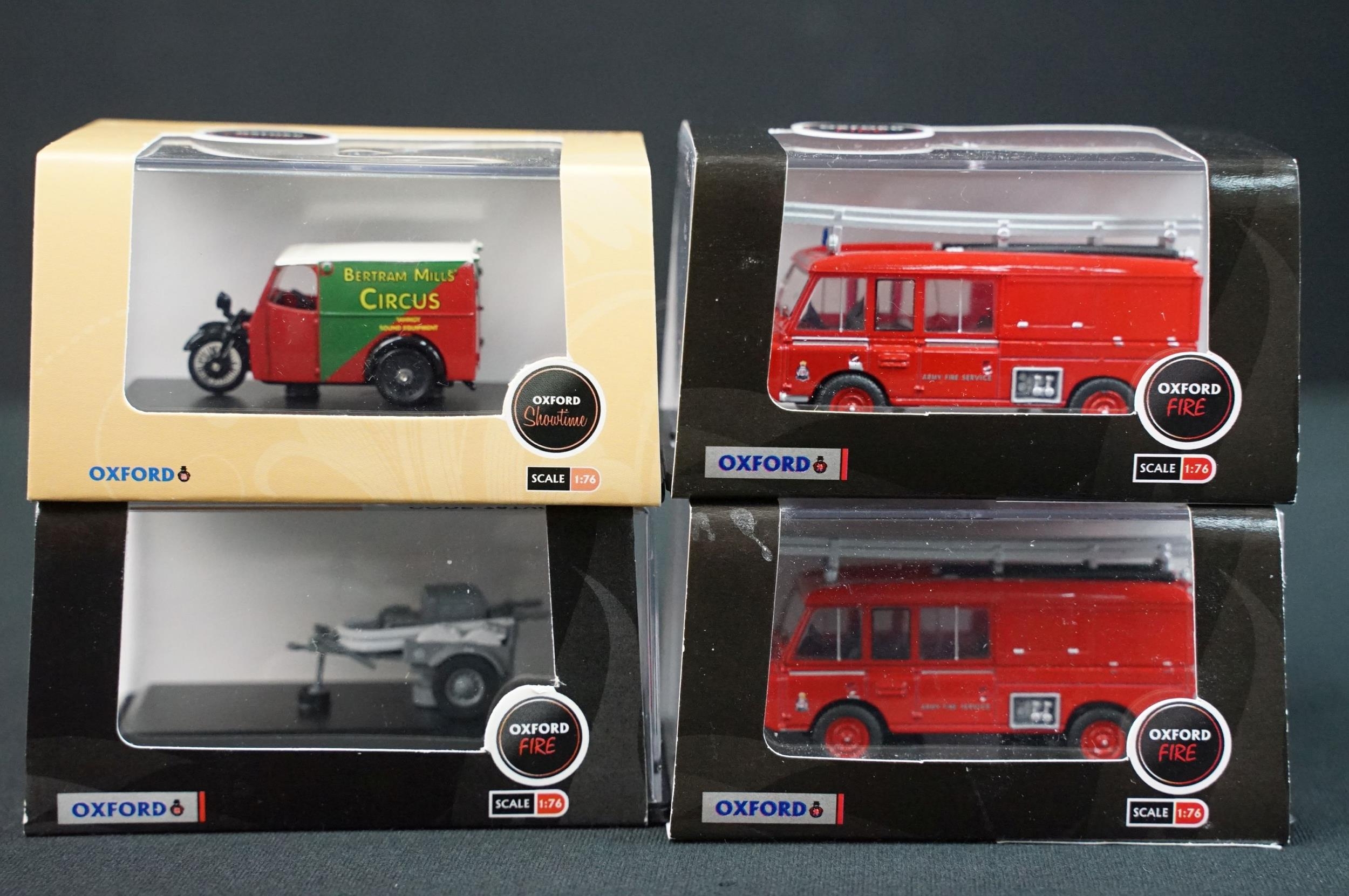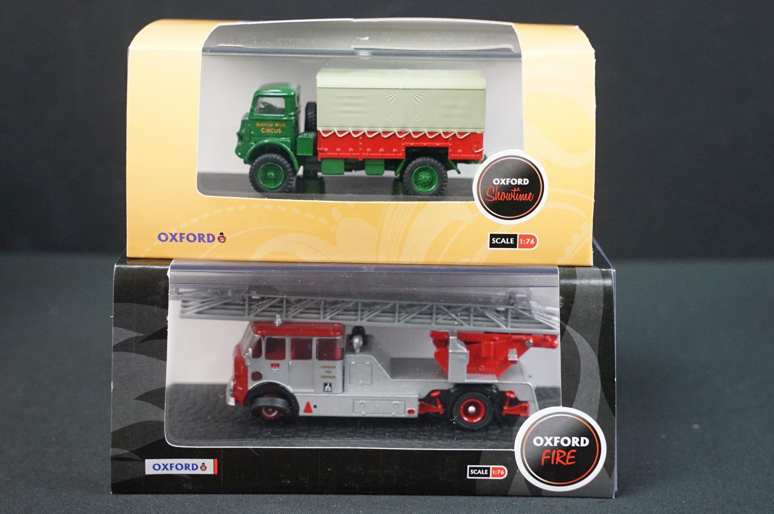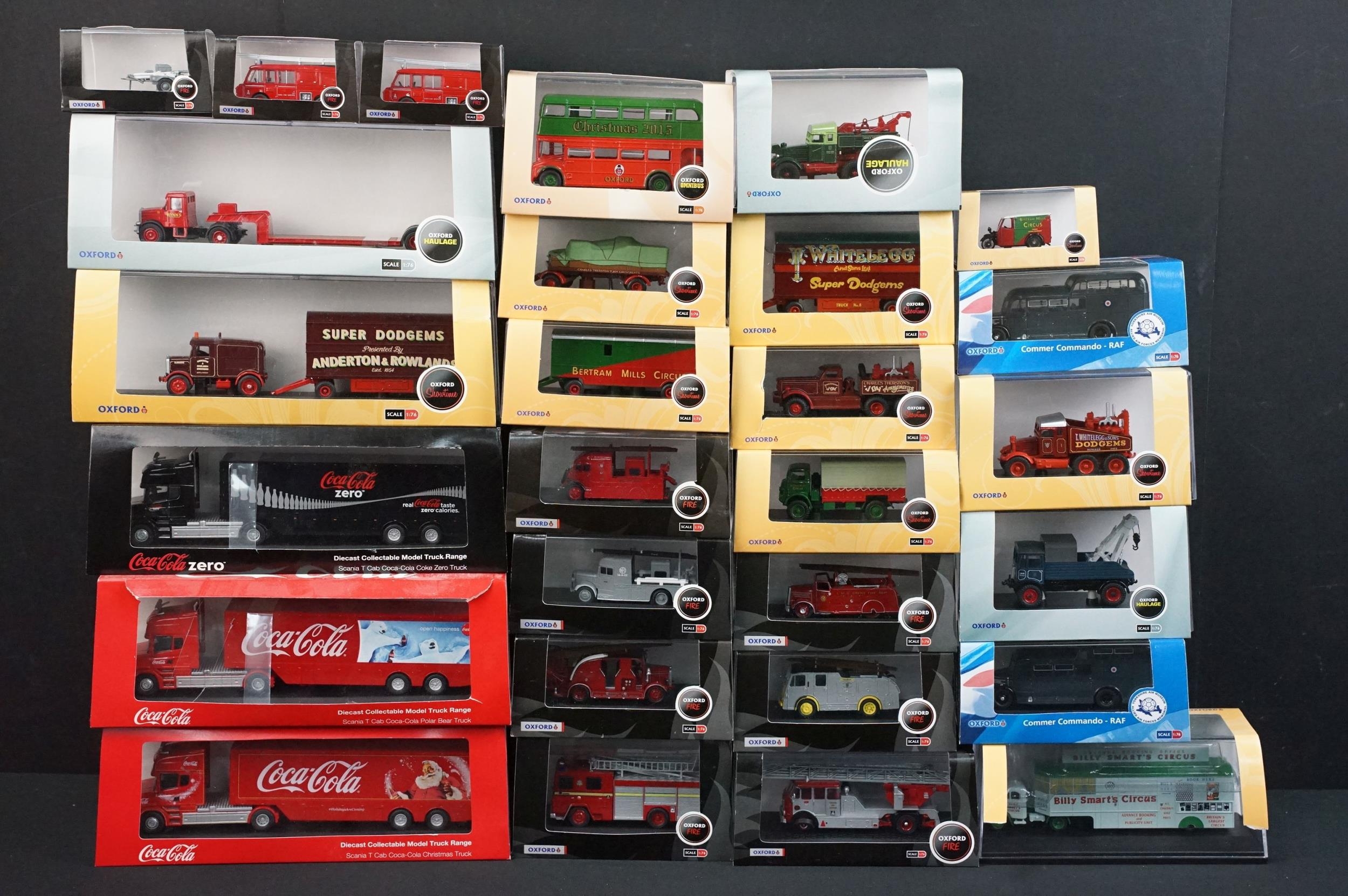 29 Cased / boxed Oxford Diecast models to include 9 x Showtime, 3 x Coca Cola, 10 x Fire, 4 x Haulage, 1 x Omnibus, and 2 x RAF, all ex