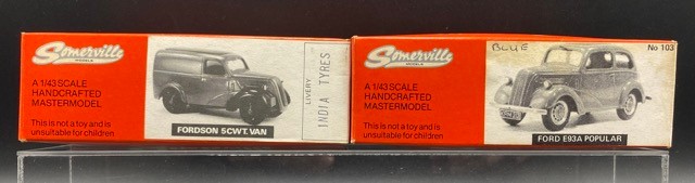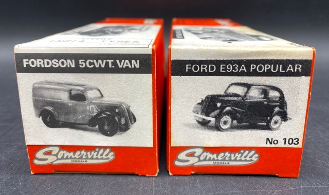 Two 1:43 Somerville Models Fordson 5CWT Van (India Tyres) and No.103 Ford E93A Popular Blue