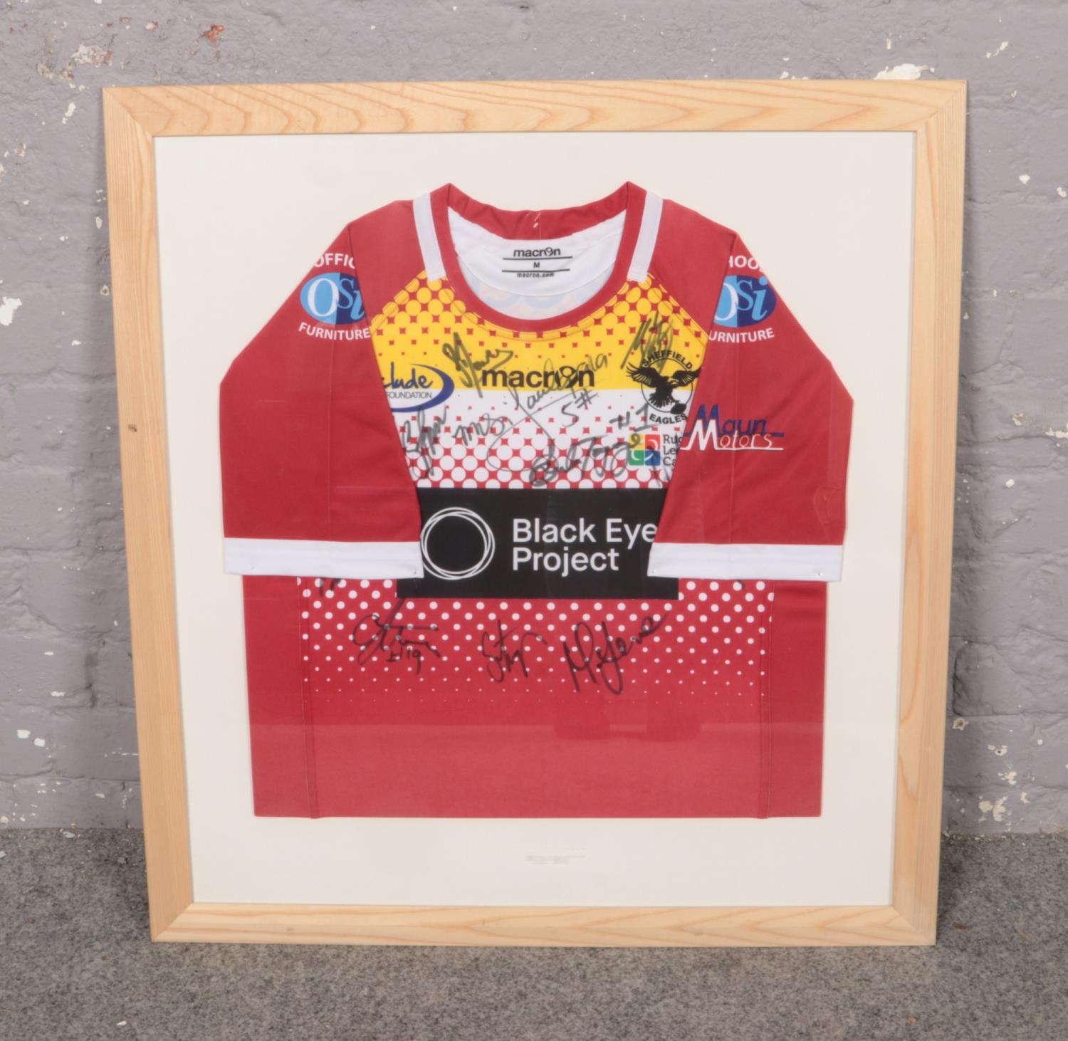 A framed & Autographed Sheffield Eagles Rugby League Shirt