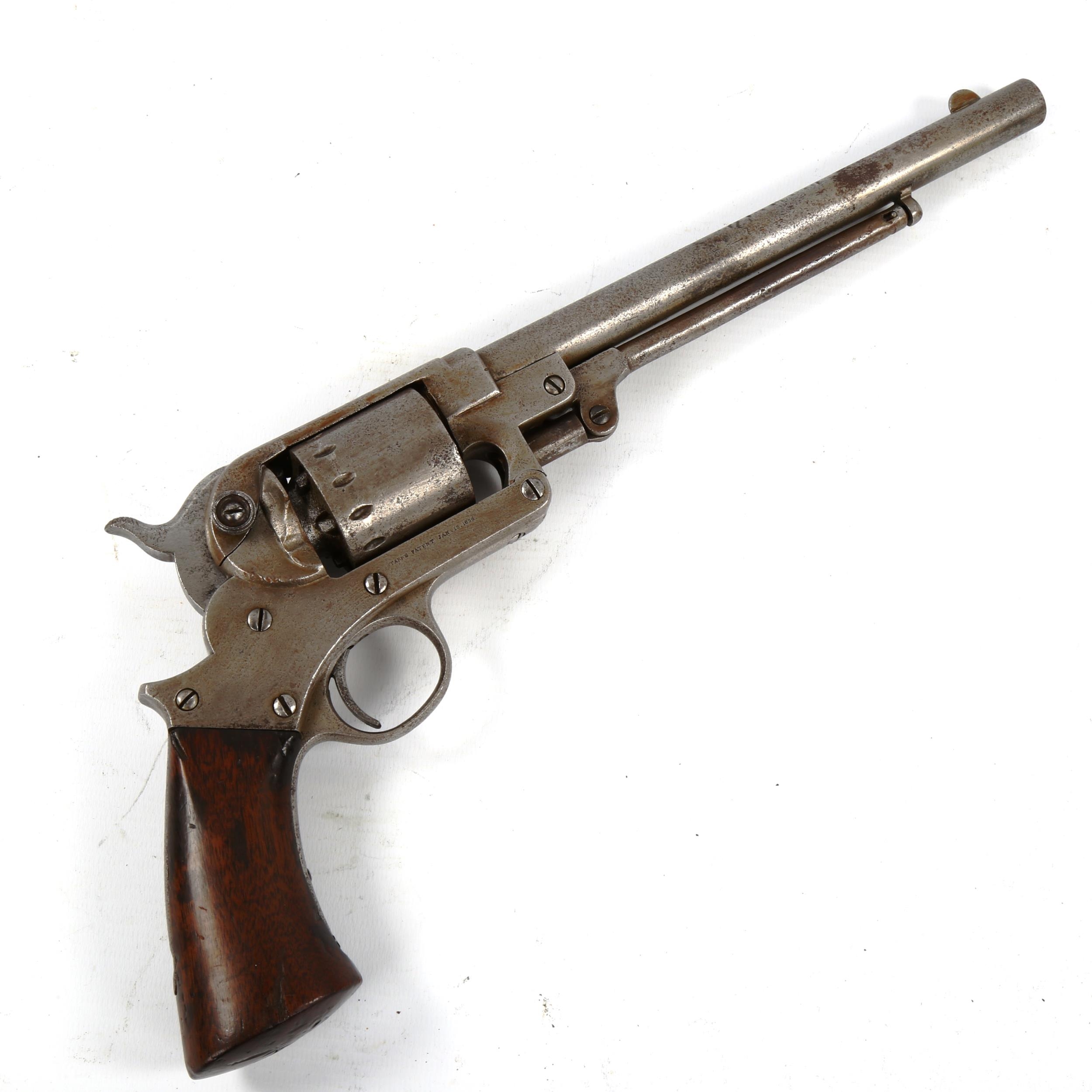 Starr Arms Co New York Model 1858 Army double action .44 Cal. percussion 6 shot revolver, 6 inch barrel; martial markings (U.S. Civil War), large scale revolver, patent date January 15th 1856, length 36cm