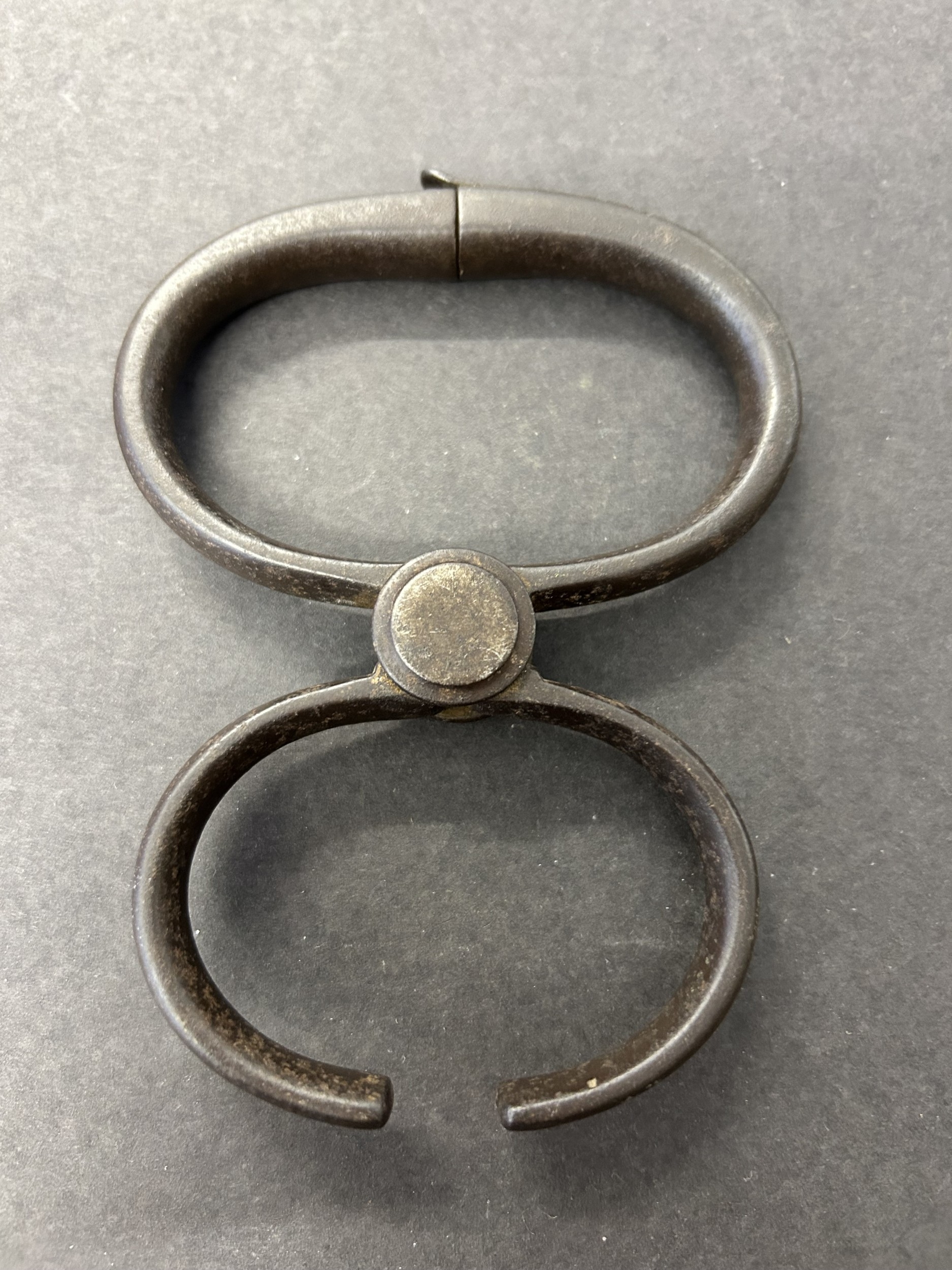A pair of Victorian 'come-along' style handcuffs as used by Victorian Police, made by Hiatt & Co Birmingham