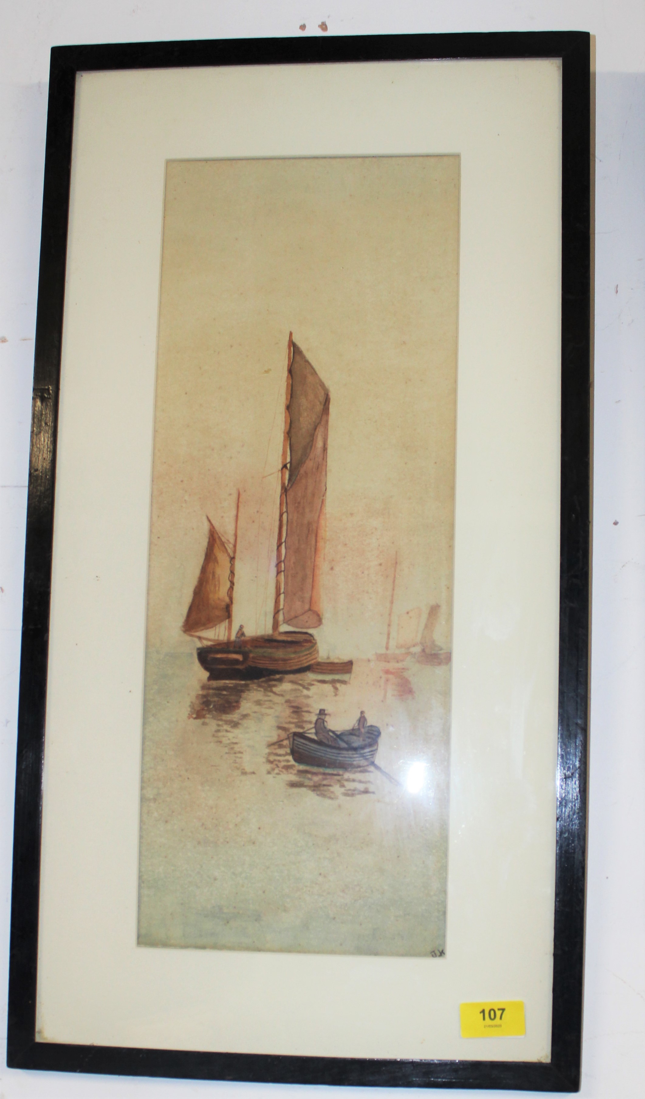 Framed and Mounted (Under Glass) Watercolour of Fishing Vessels Signed "J.K." circa 1865