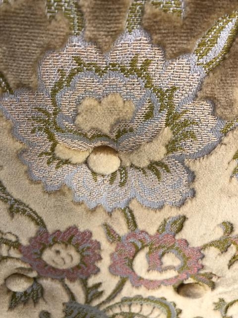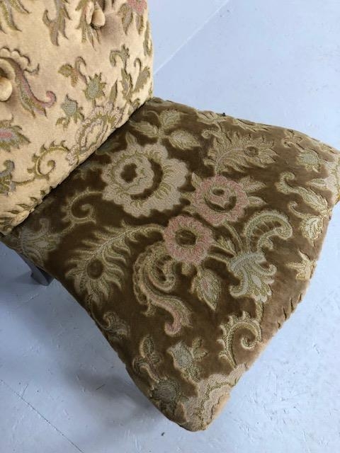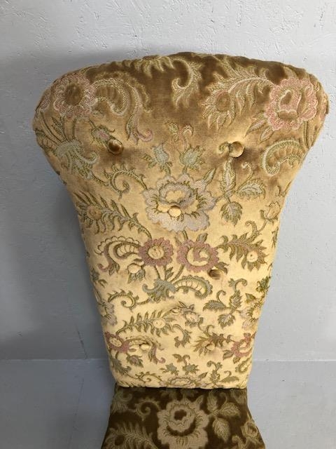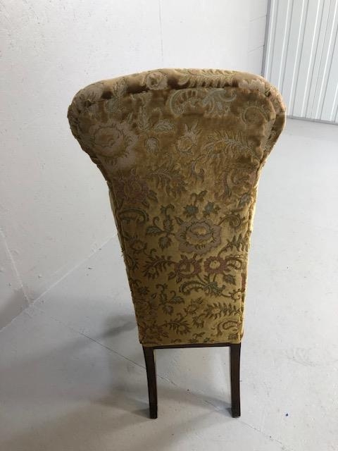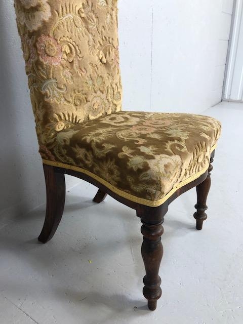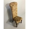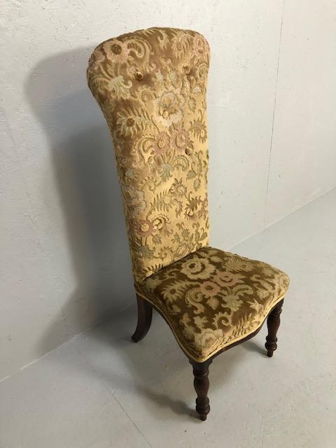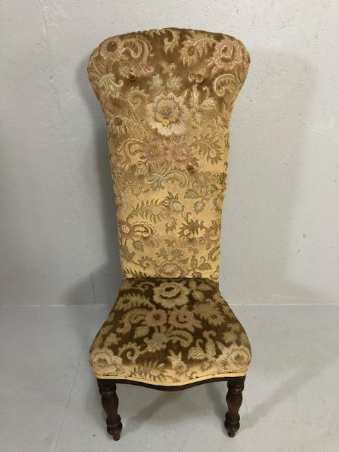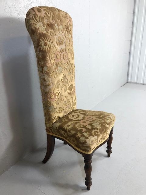 Antique Furniture, Victorian high back prayer chair upholstered in floral brocade, on turned legs