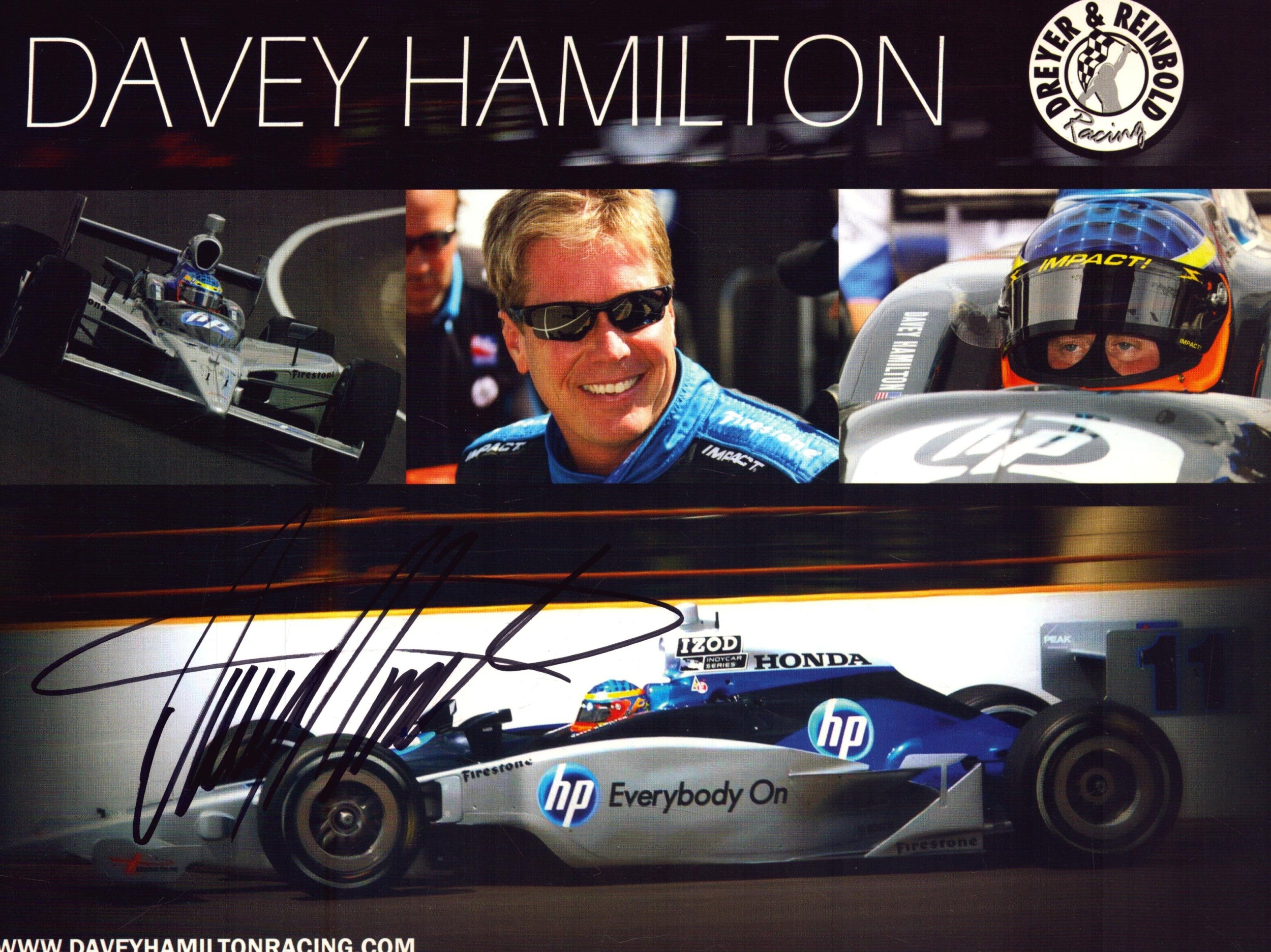 Davey Hamilton signed Dreyer and Reinbold Racing promo card, 10x8inch.