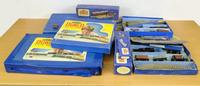 Large collection of model railway items including a transformer, Hornby animals, Hornby track, etc