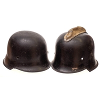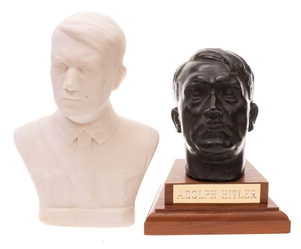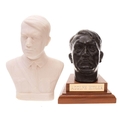A WWII period German oak wall bracket with insignia: 30cm, together with a bronzed bust of Adolf Hitler inscribed 'HMLE7' and a reconstituted marble bust of Hitler (3)