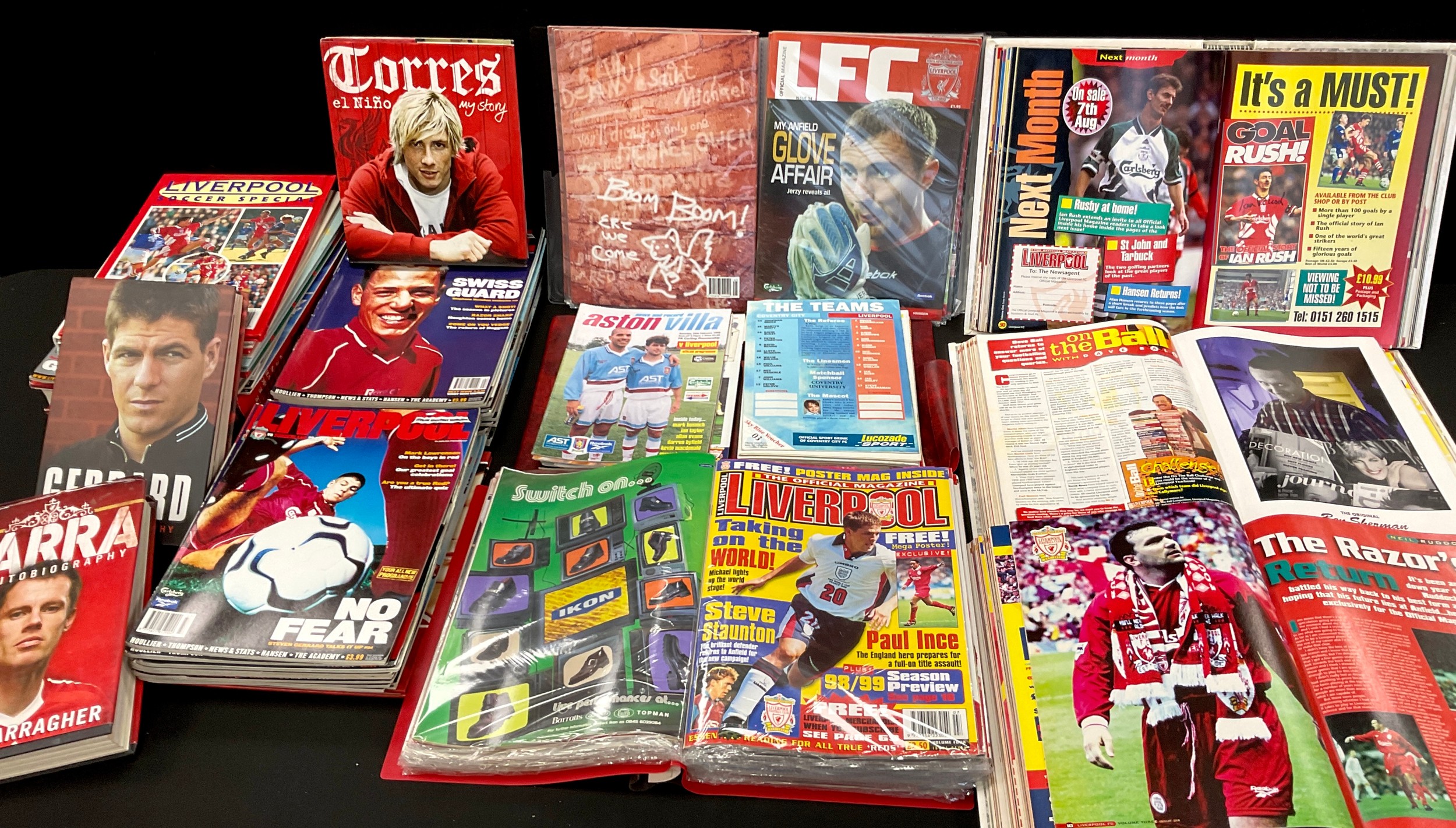 Sporting Interest - Football Liverpool interest, 1970s and later programs, 1972/73 season others 73/74, 74/75, etc - Official matchday magazines, others LFC, Autobiography books for Steven Gerrard, Jamie Carragher, Fernando Torres, related books, annuals etc qty