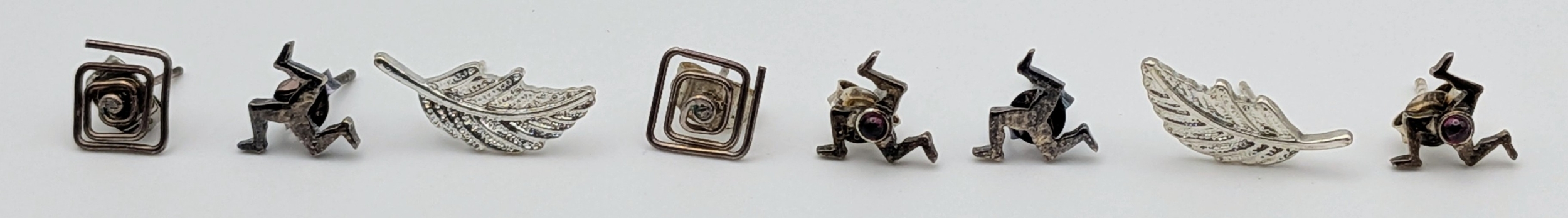 An assorted collection of 4 vintage pairs of 925 silver earrings with various designs. Total weight 3.7G.