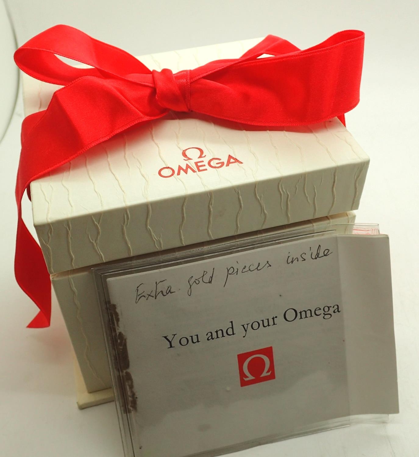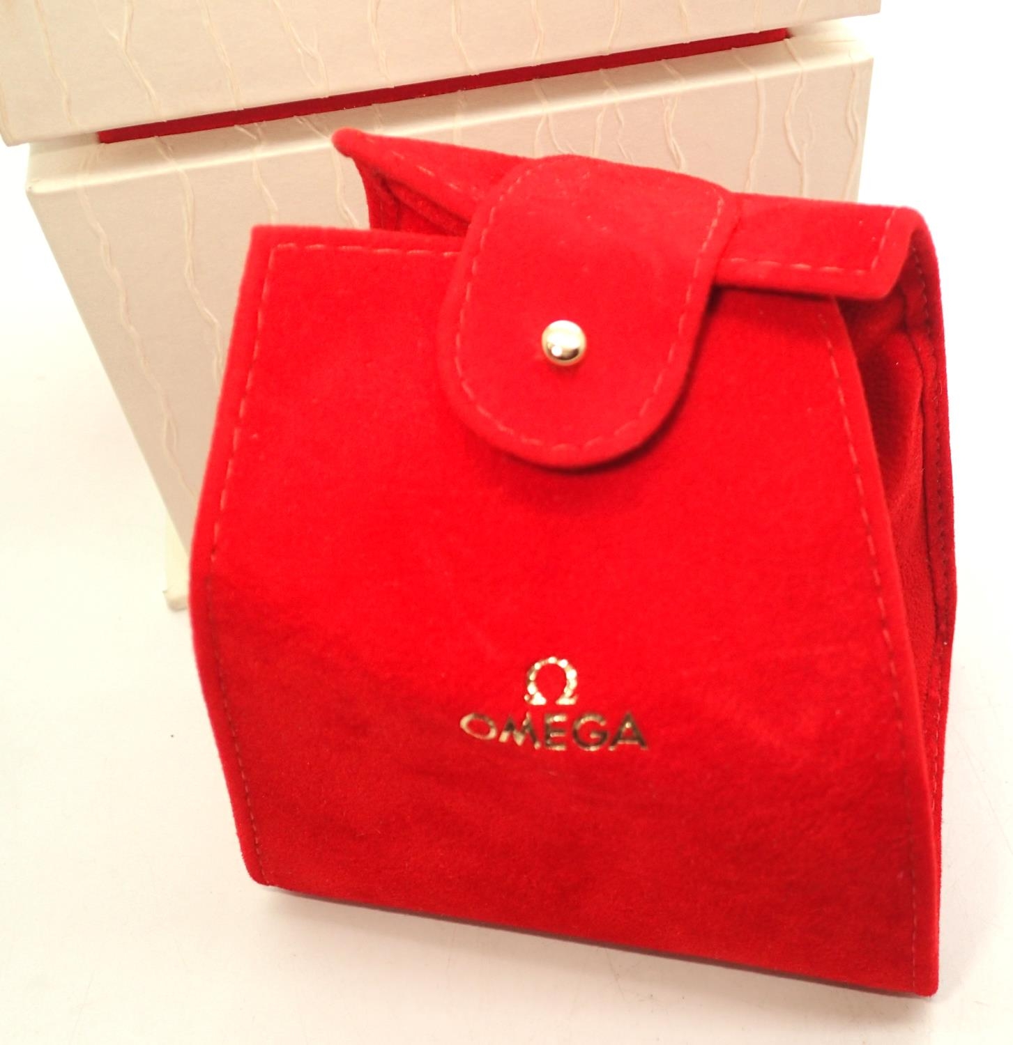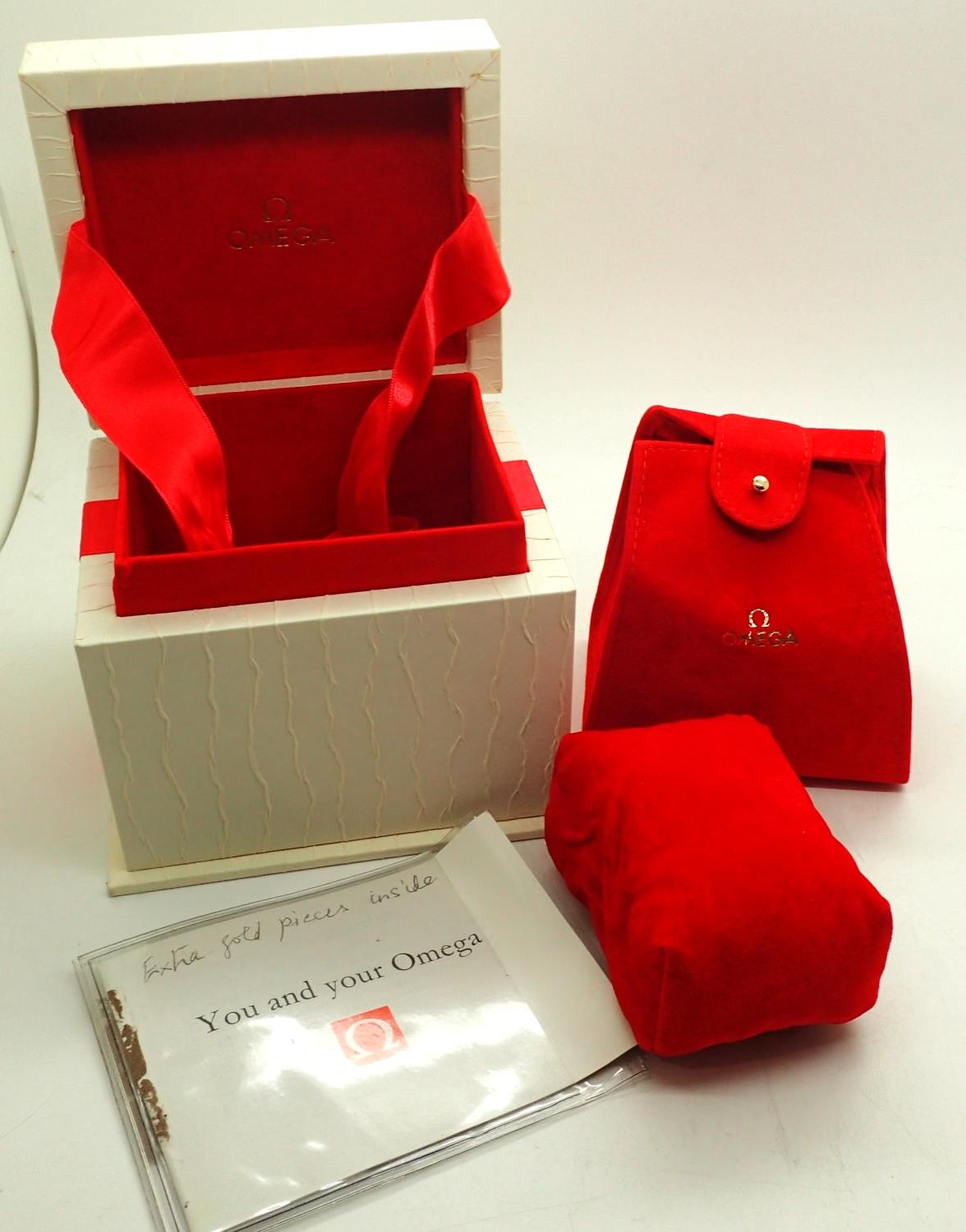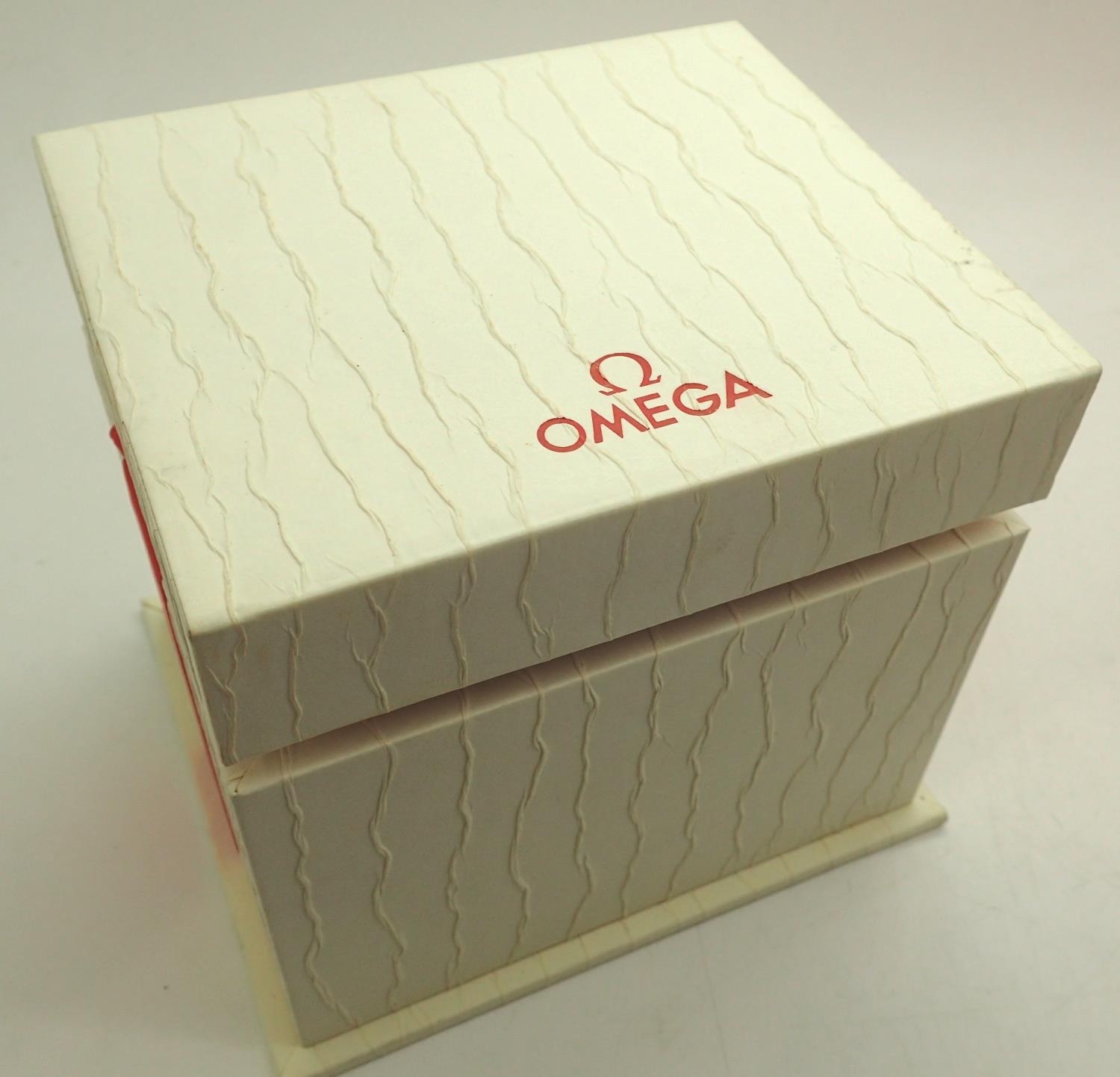 Omega; unusual white wristwatch box with papers. P&P Group 1 (£14+VAT for the first lot and £1+VAT for subsequent lots)