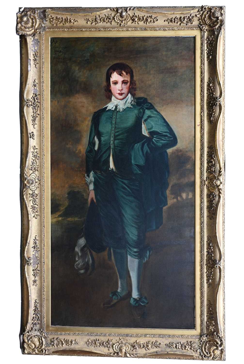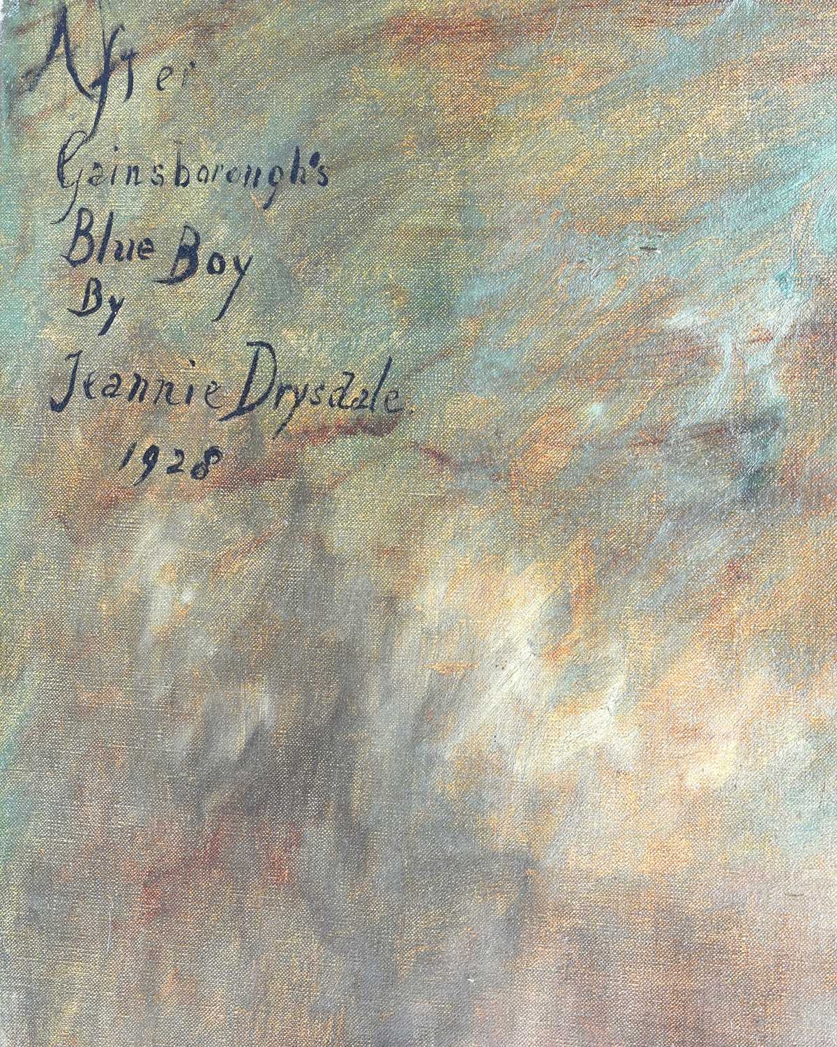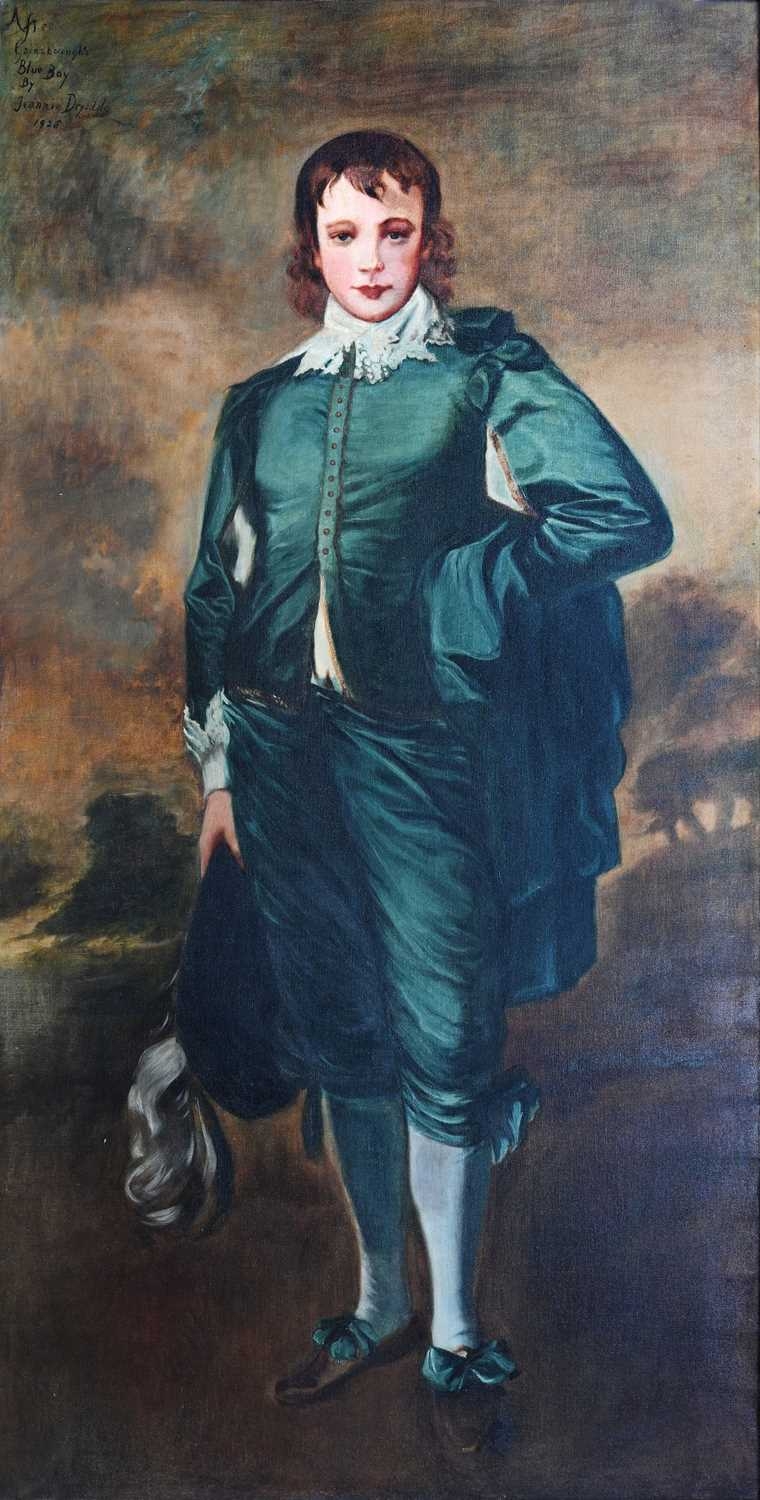 Jeannie Drysdale (British, early 20th Century), The Blue Boy after Thomas Gainsborough, titled, signed, and dated 1928 u.l., oil on canvas, 225 by 116cm, in the original serpentine gilt frame