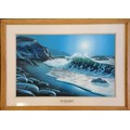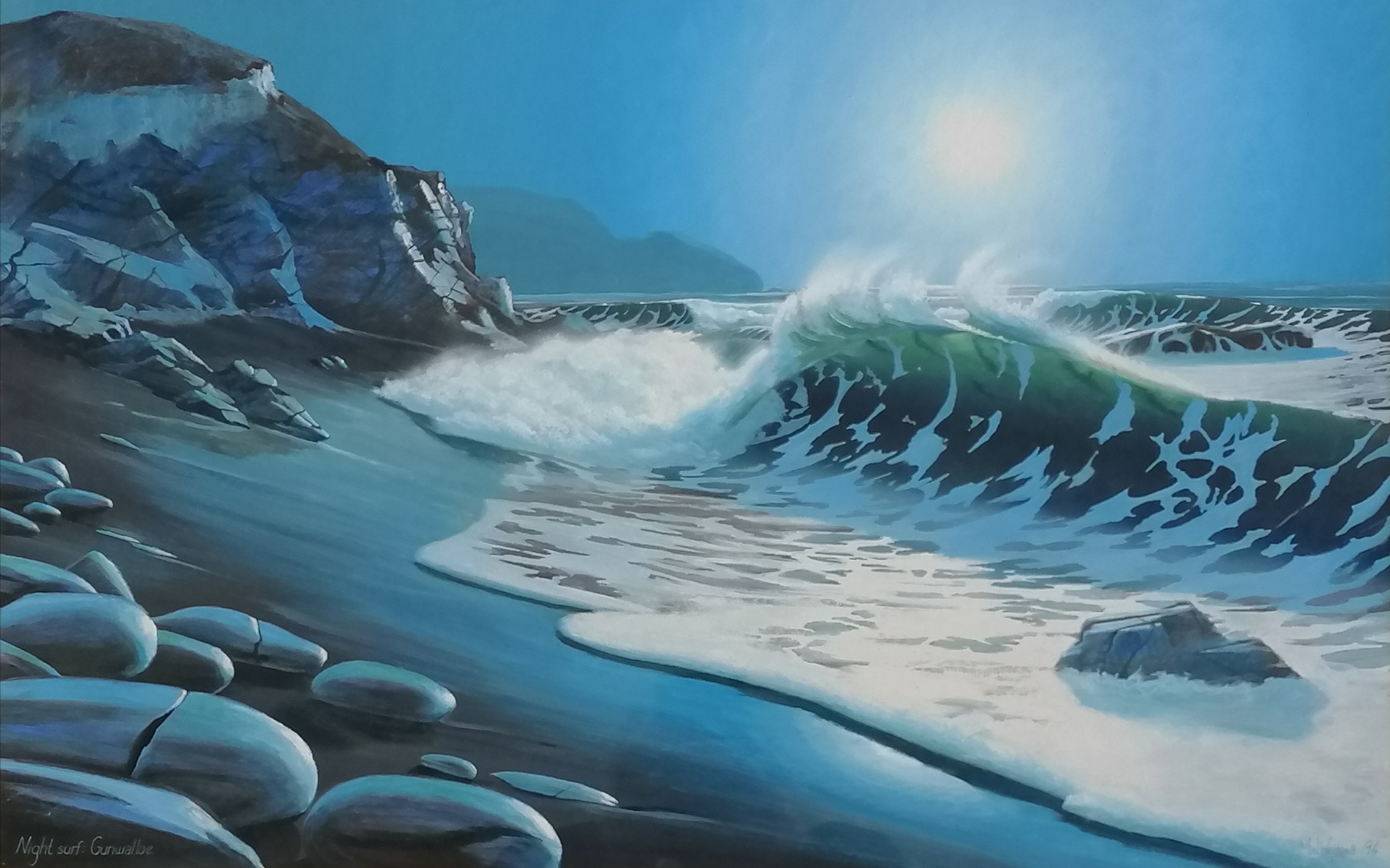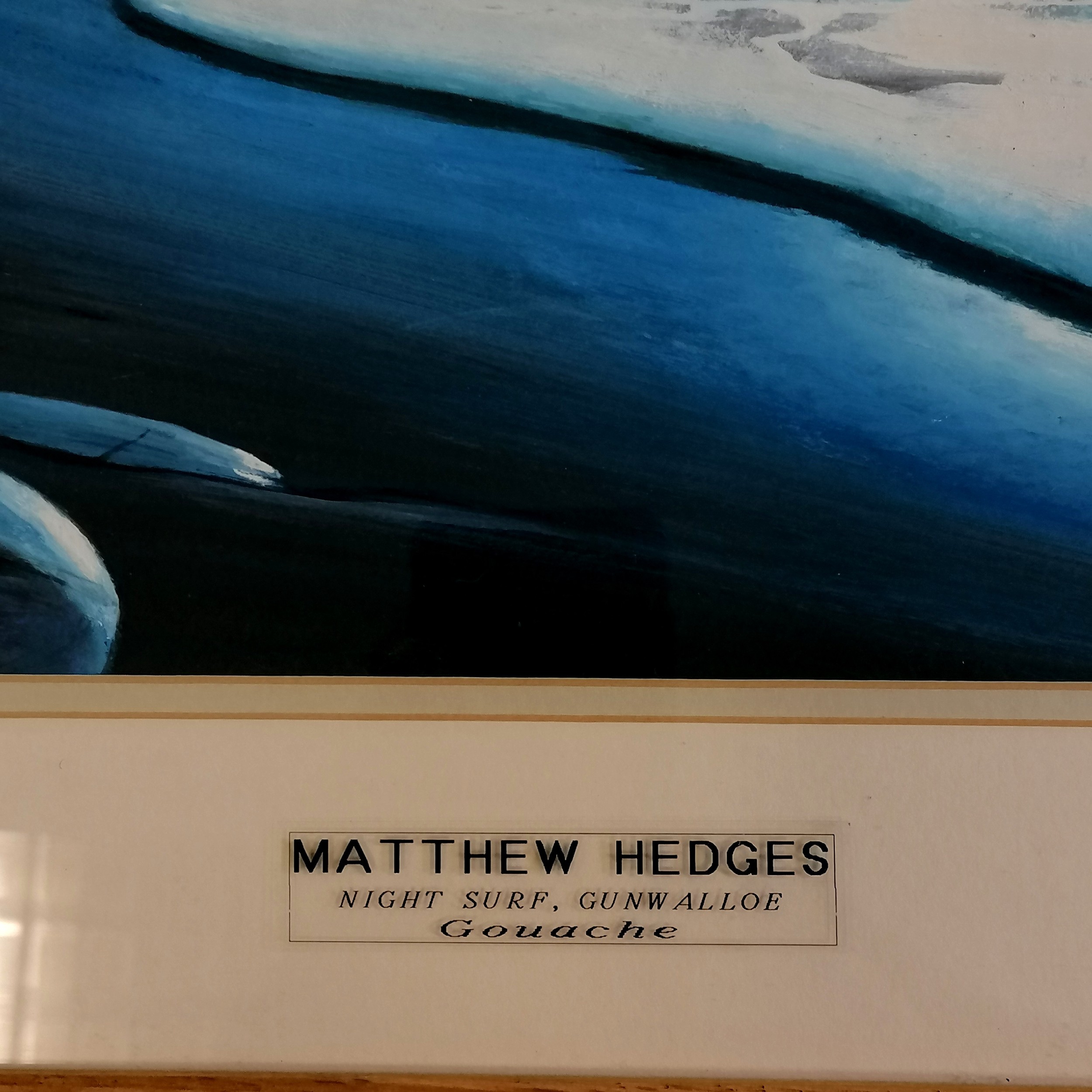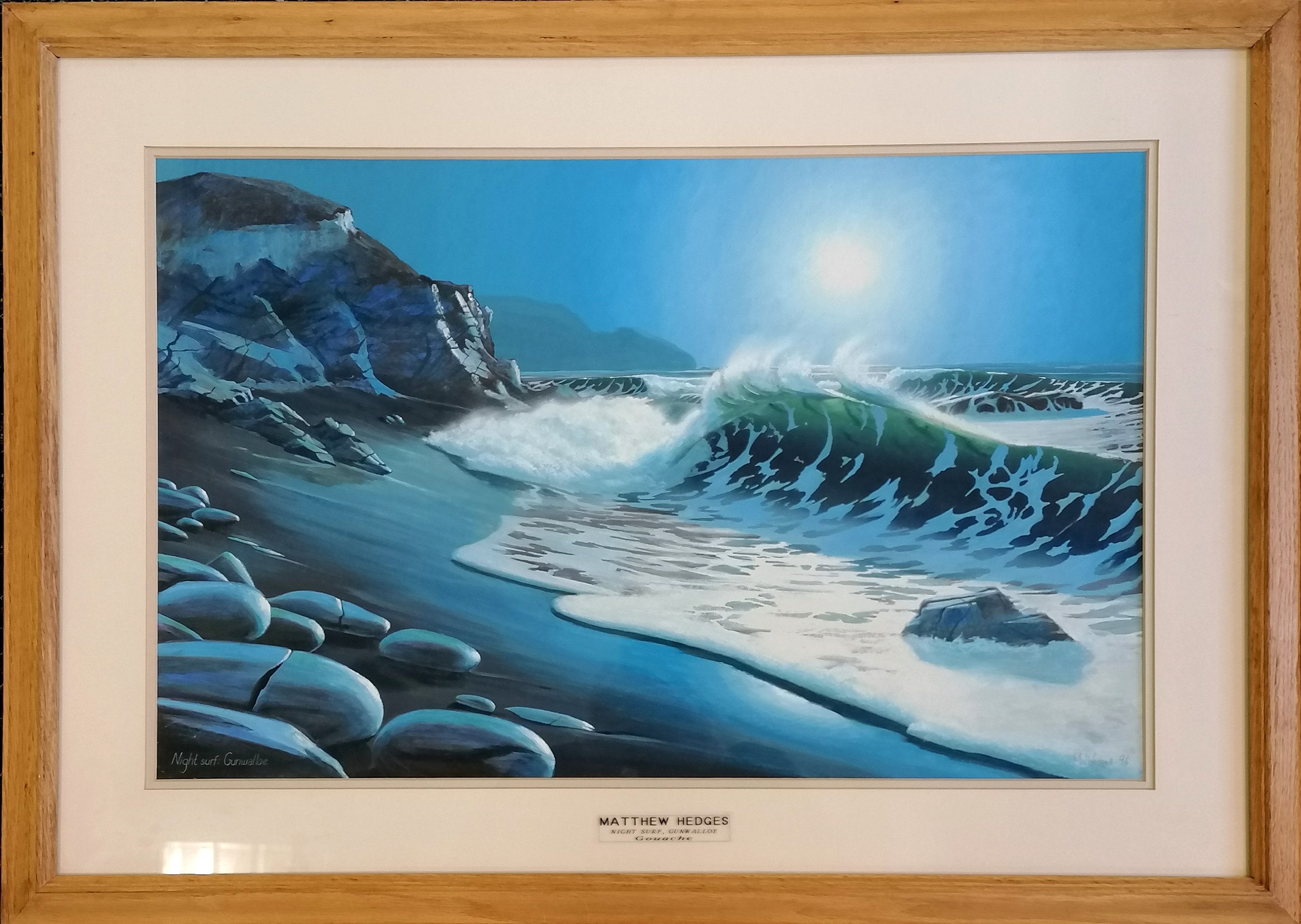 Matthew Hedges waveart gouache painting 'Night surf : Gunwalloe' - frame 55cm x 76.5cm