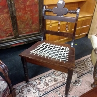 A mahogany bow fronted four drawer bedroom chest resting on tapered legs.