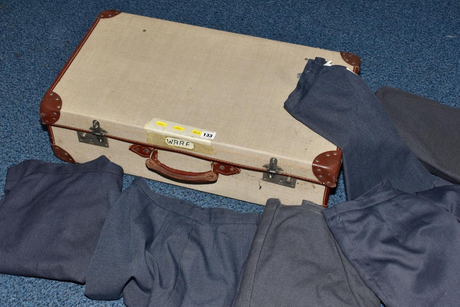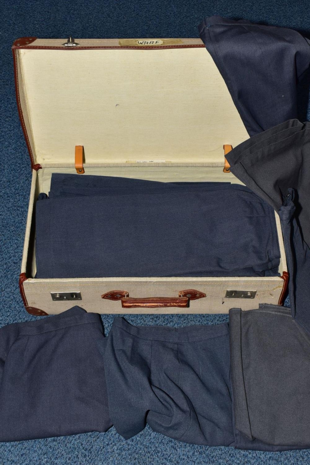 A SUITCASE FULL OF WOMENS AIR FORCE BLUE WOOLLEN SKIRTS, all appear good condition and post WWII