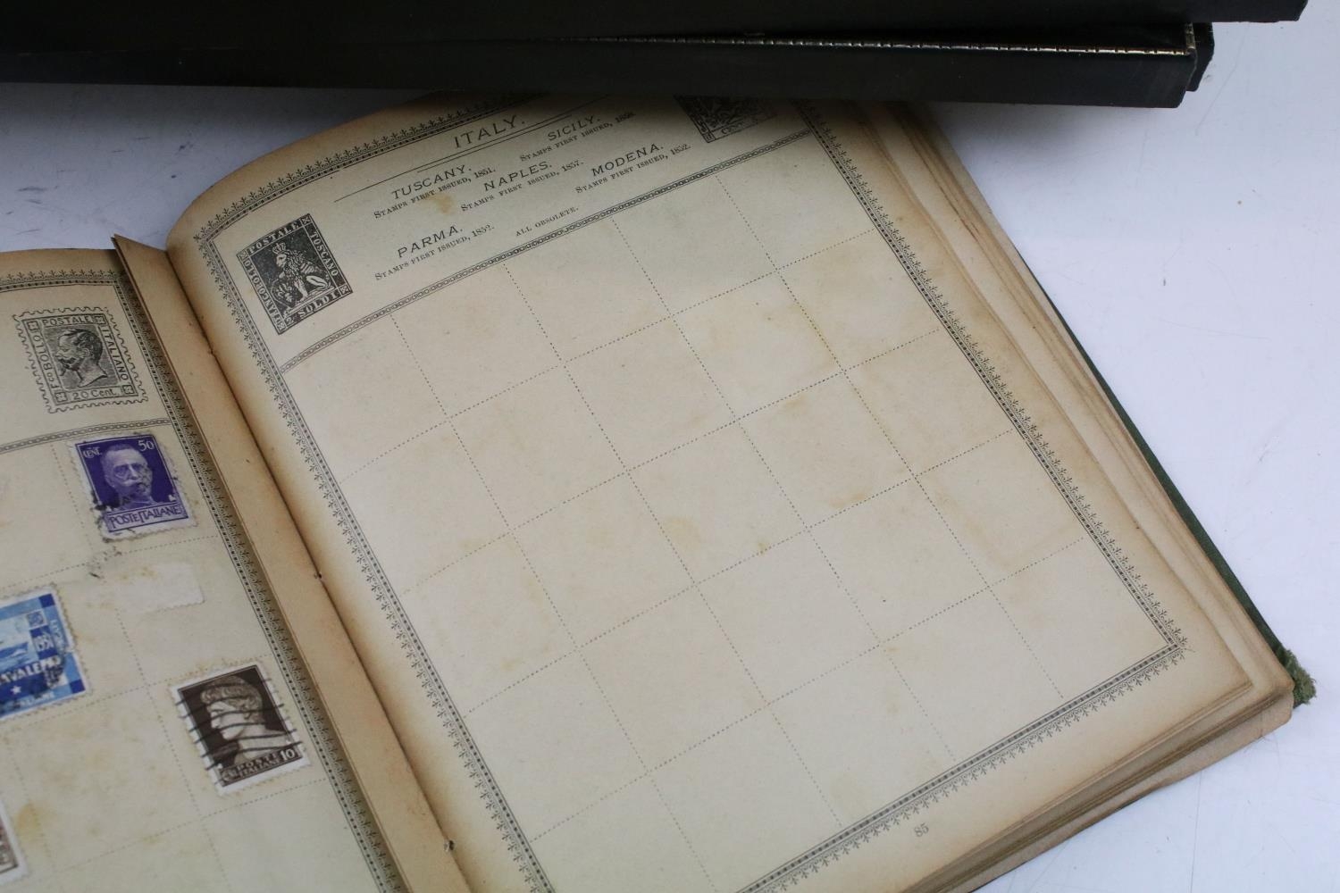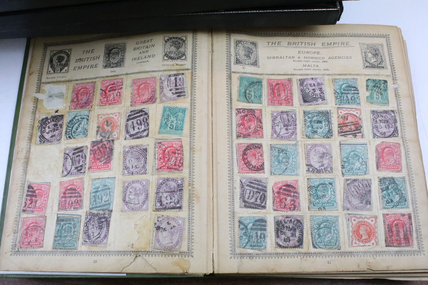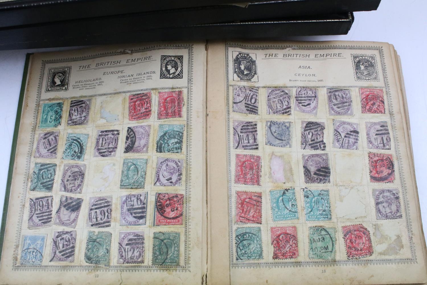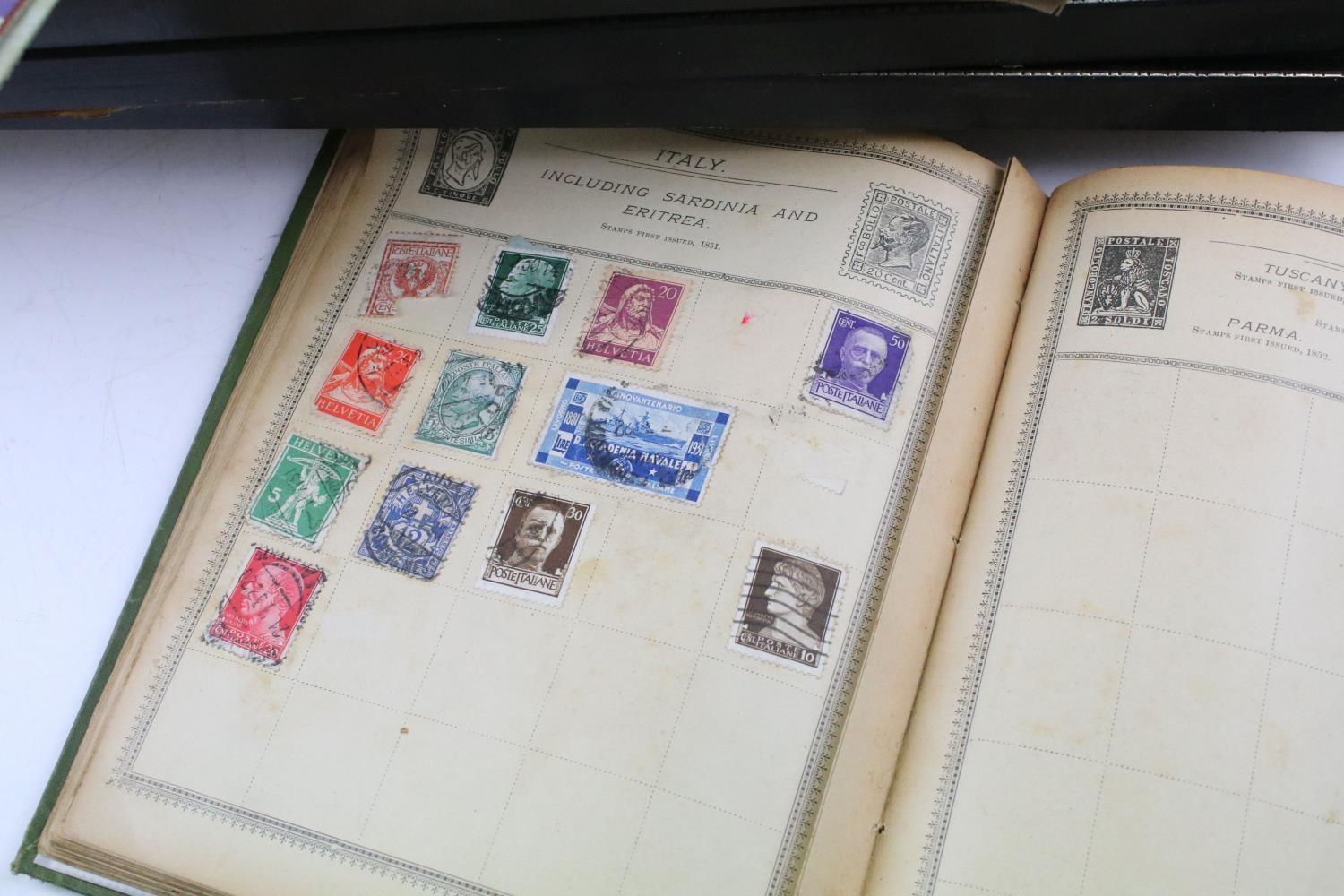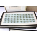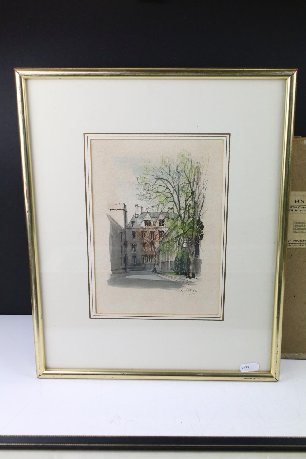 Mixed ephemera & collectables to include framed stamp sheets, 'On His Majesty's Service' photographs, watercolour, Folio Society Peter Pan hardback, Hamilton Industries desk lamp, leather CDV albums, stamp albums, first day covers, etc. (2 trays)