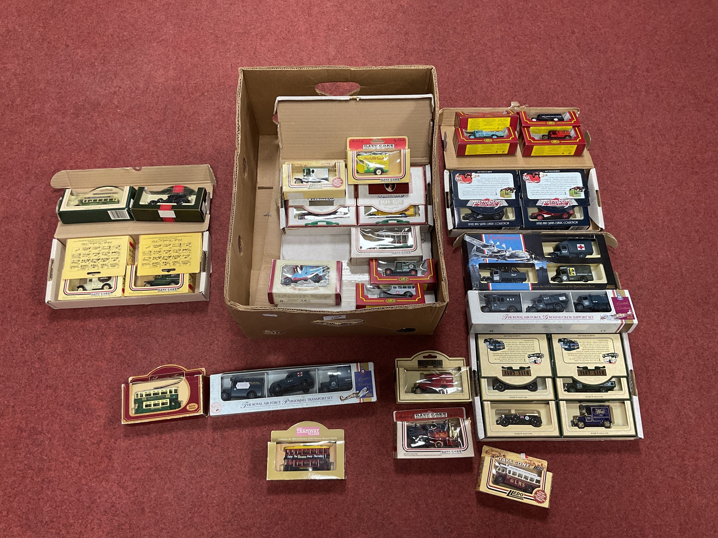 Approximately Fifty Diecast Model Vehicles by Lledo, Corgi and other. Including Lledo The Royal Air Force Personnel Transport Set, Boxed.