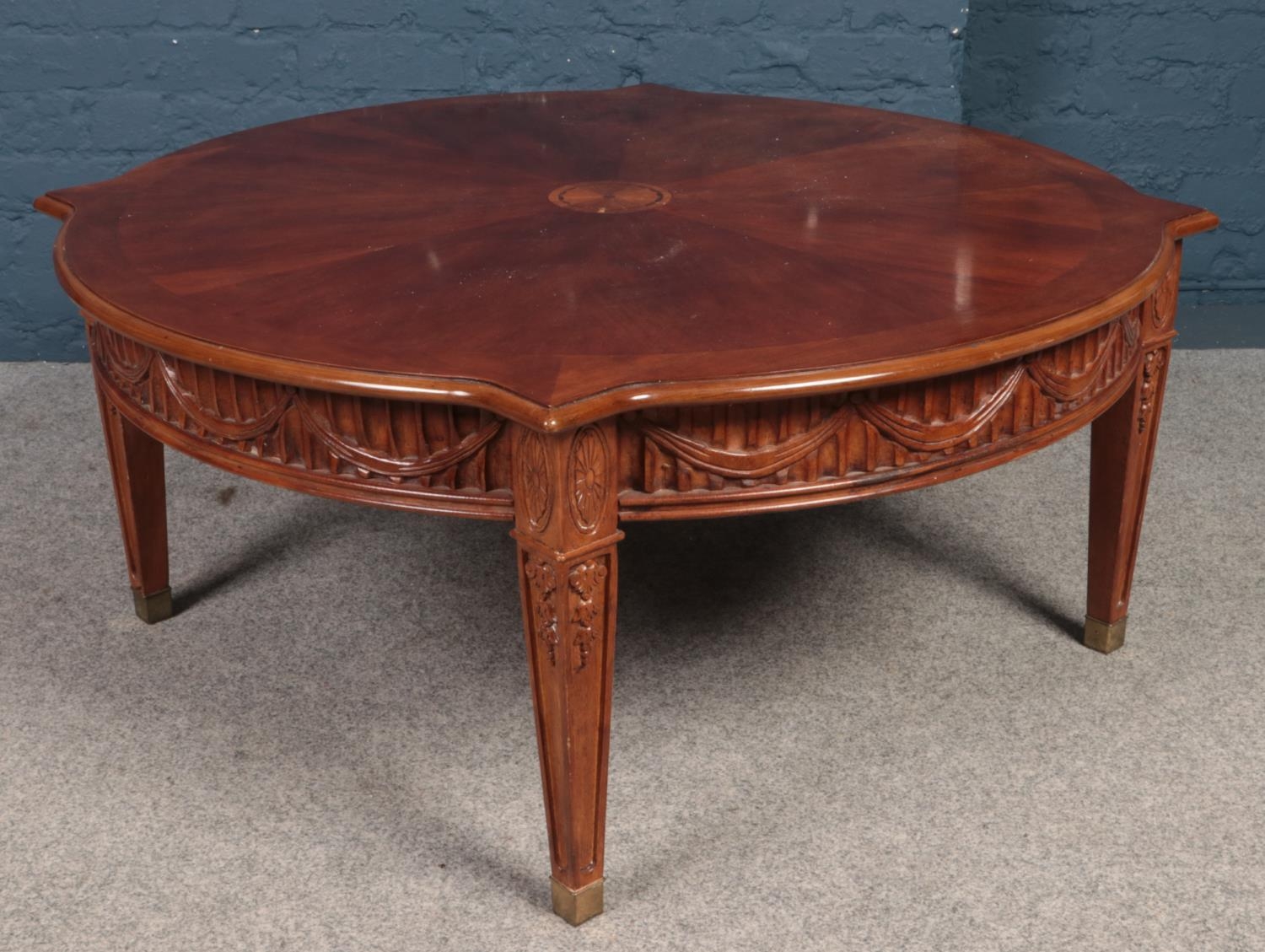 A circular mahogany fan patera coffee table. (48cm x 106cm)