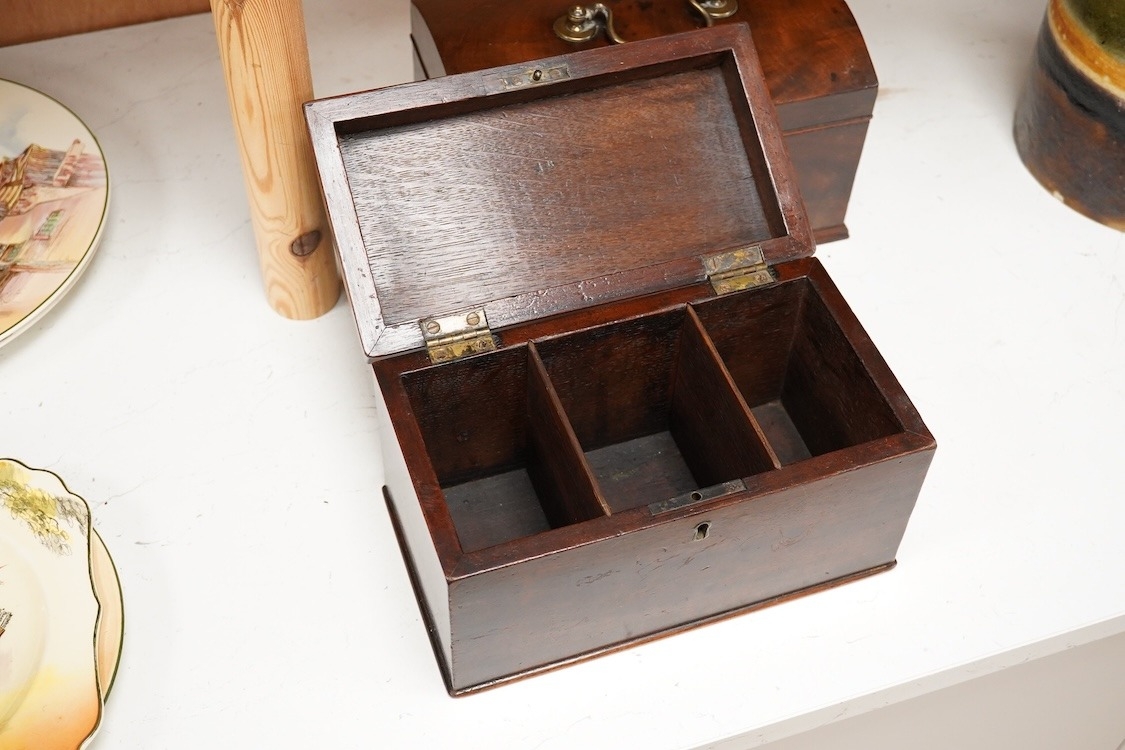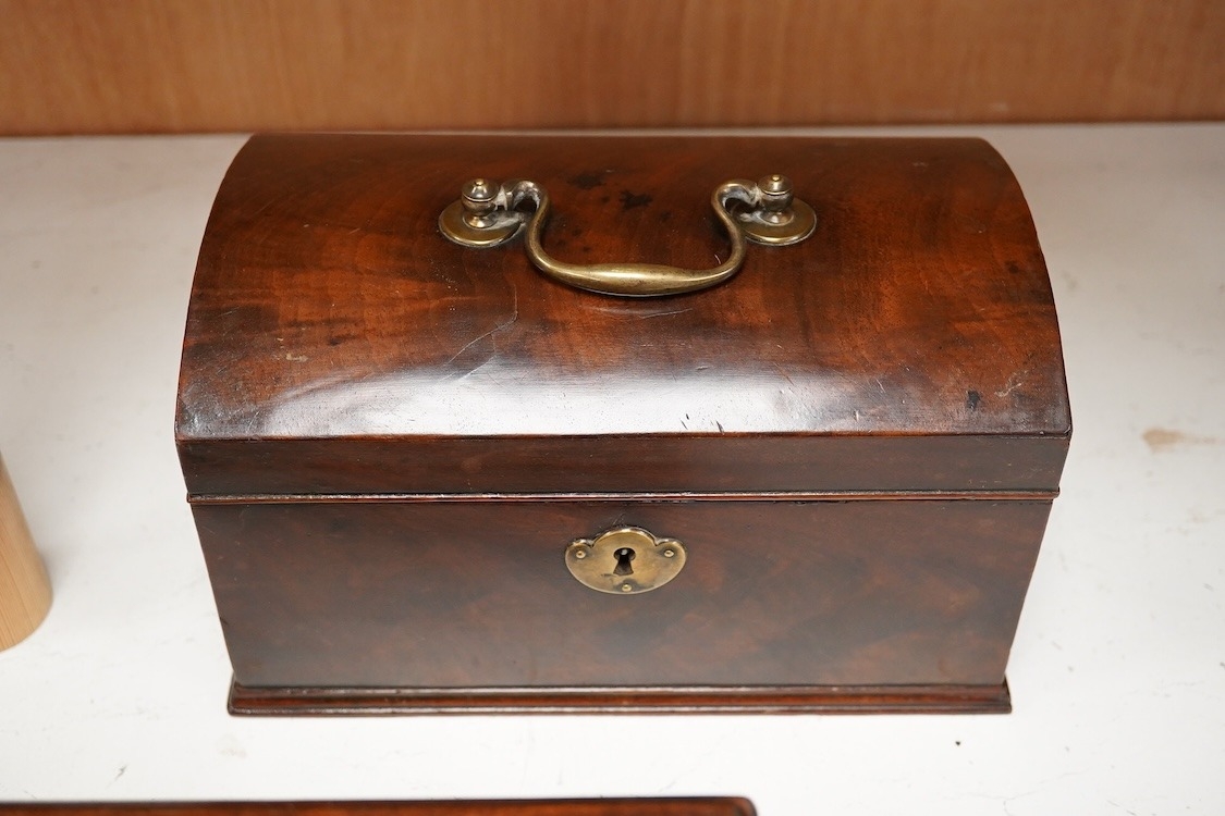 A George III mahogany dome-top tea caddy, together with another, 23cm wide