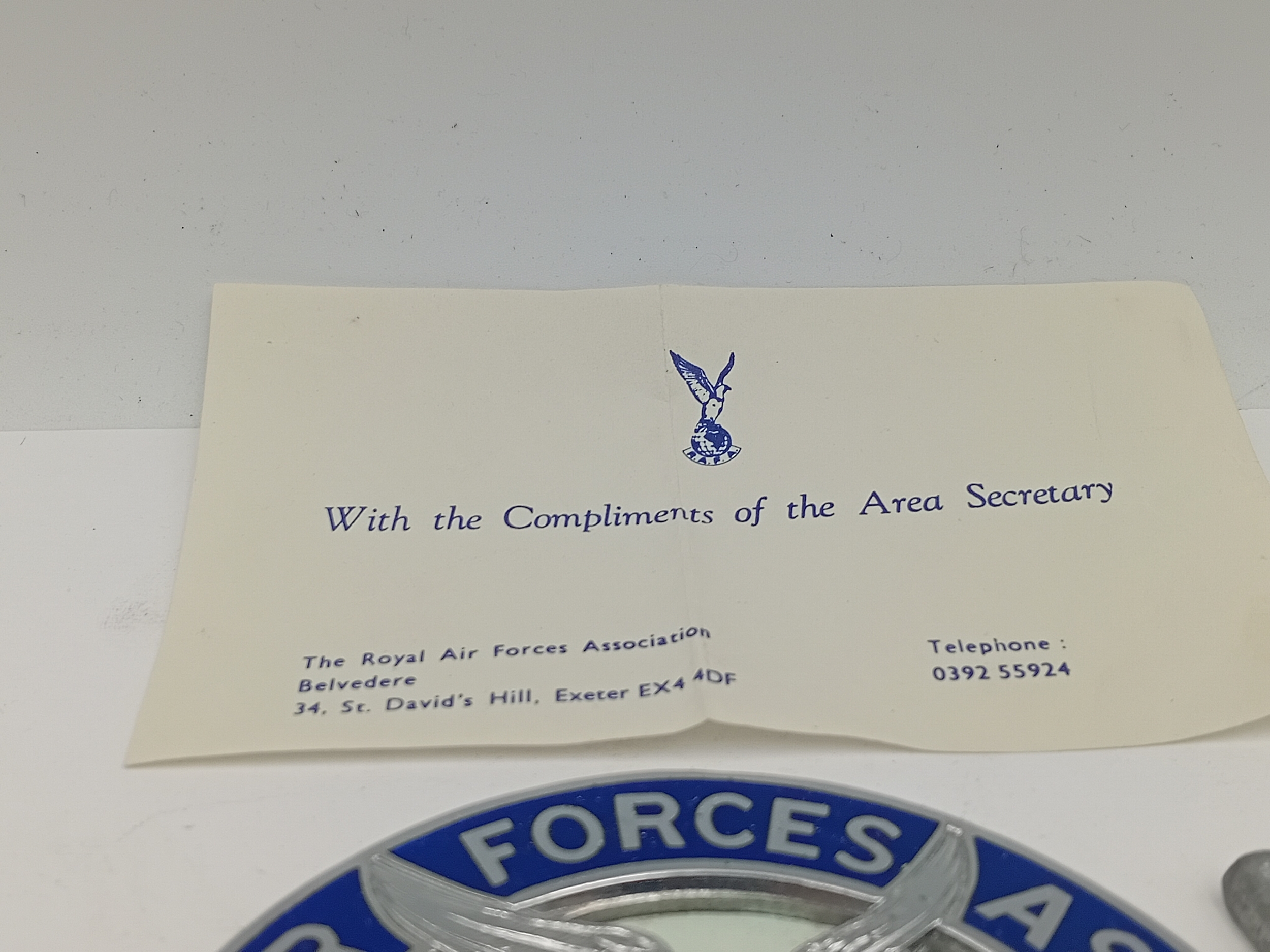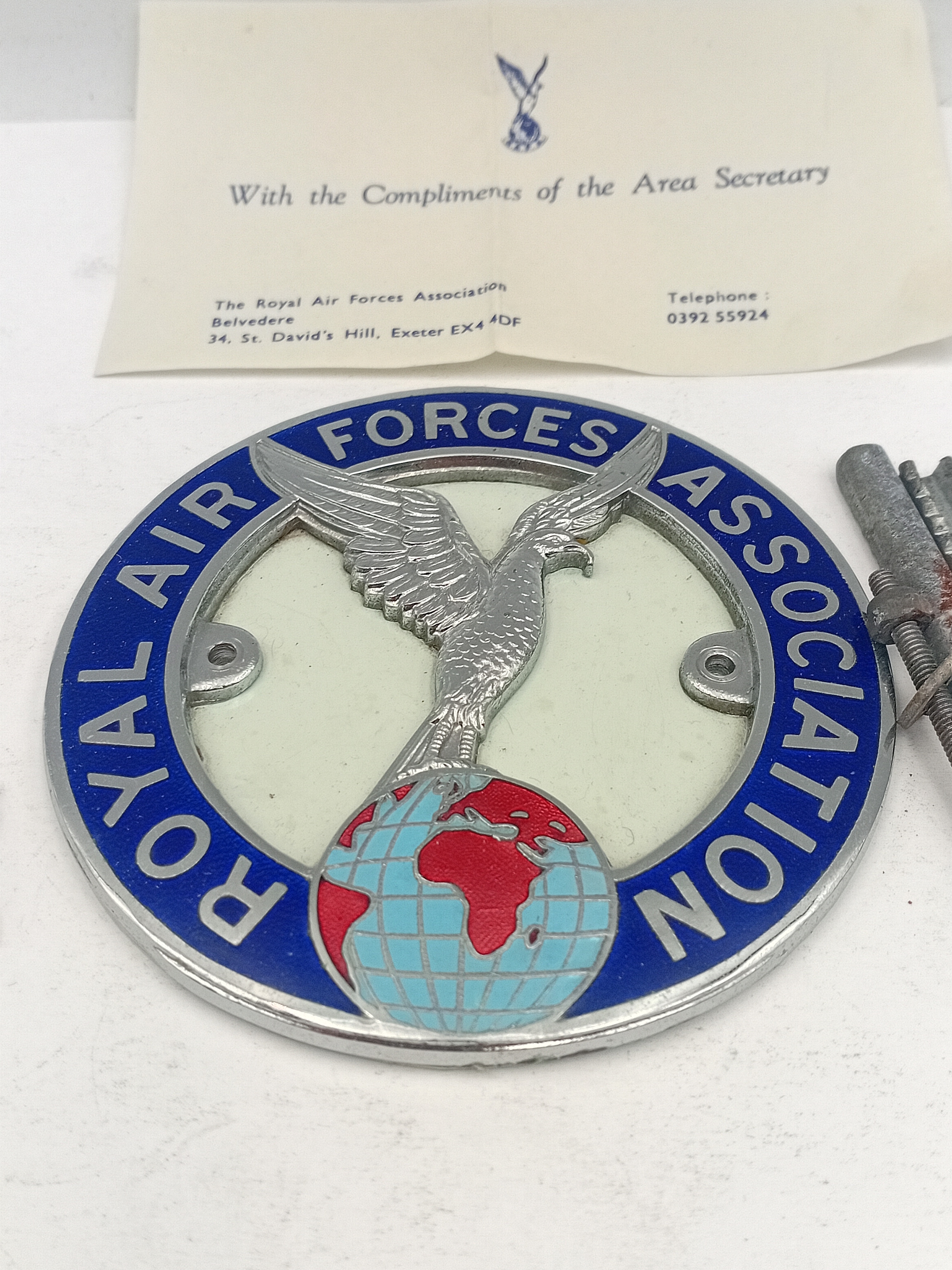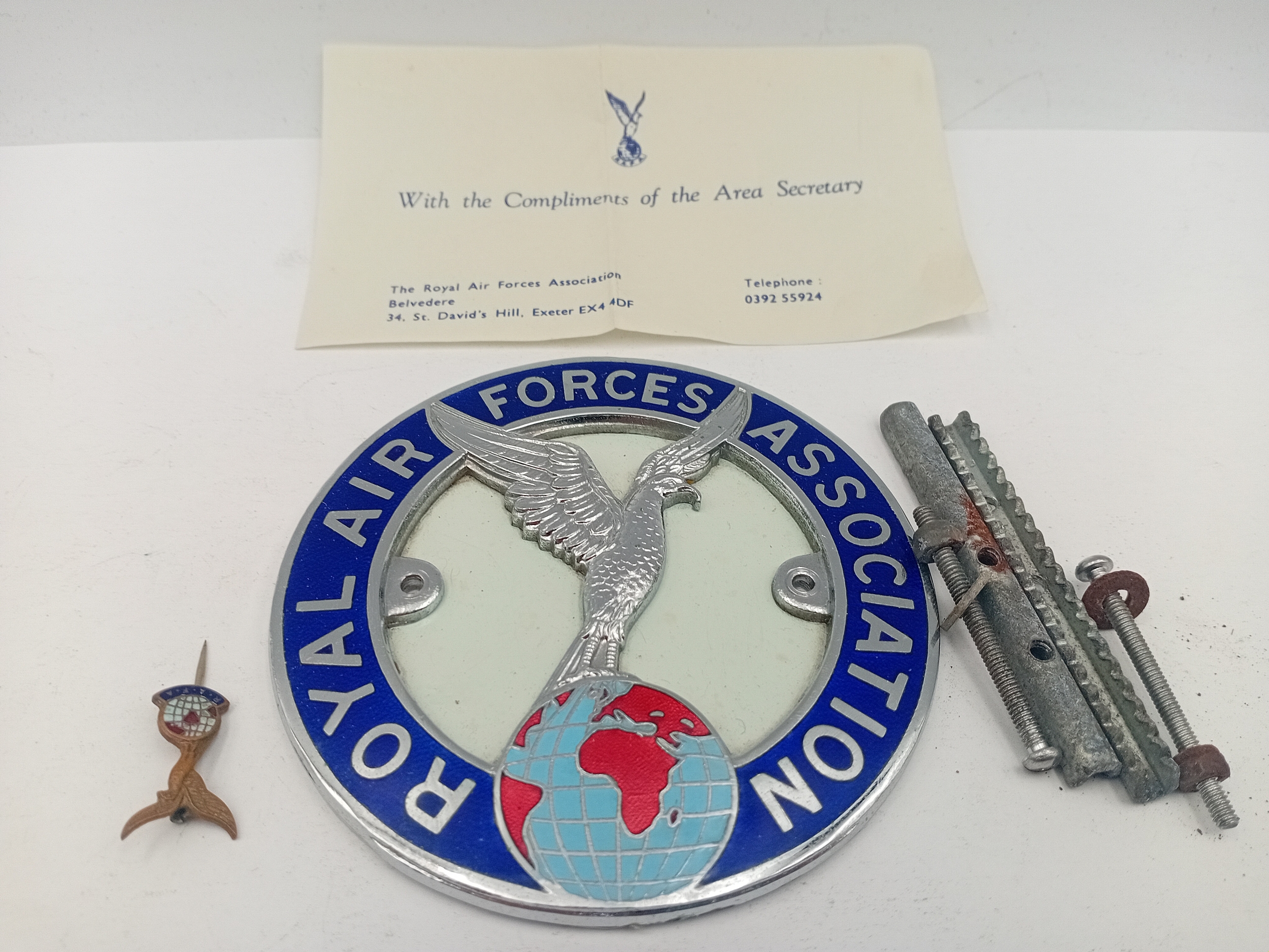 Royal Air forces association metal enamelled car badge and lapel pin.