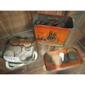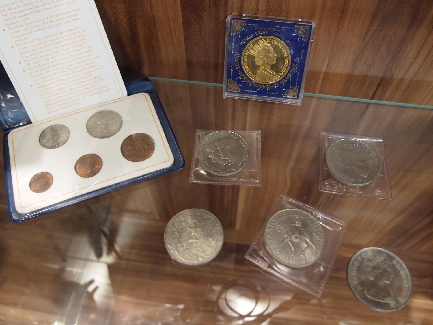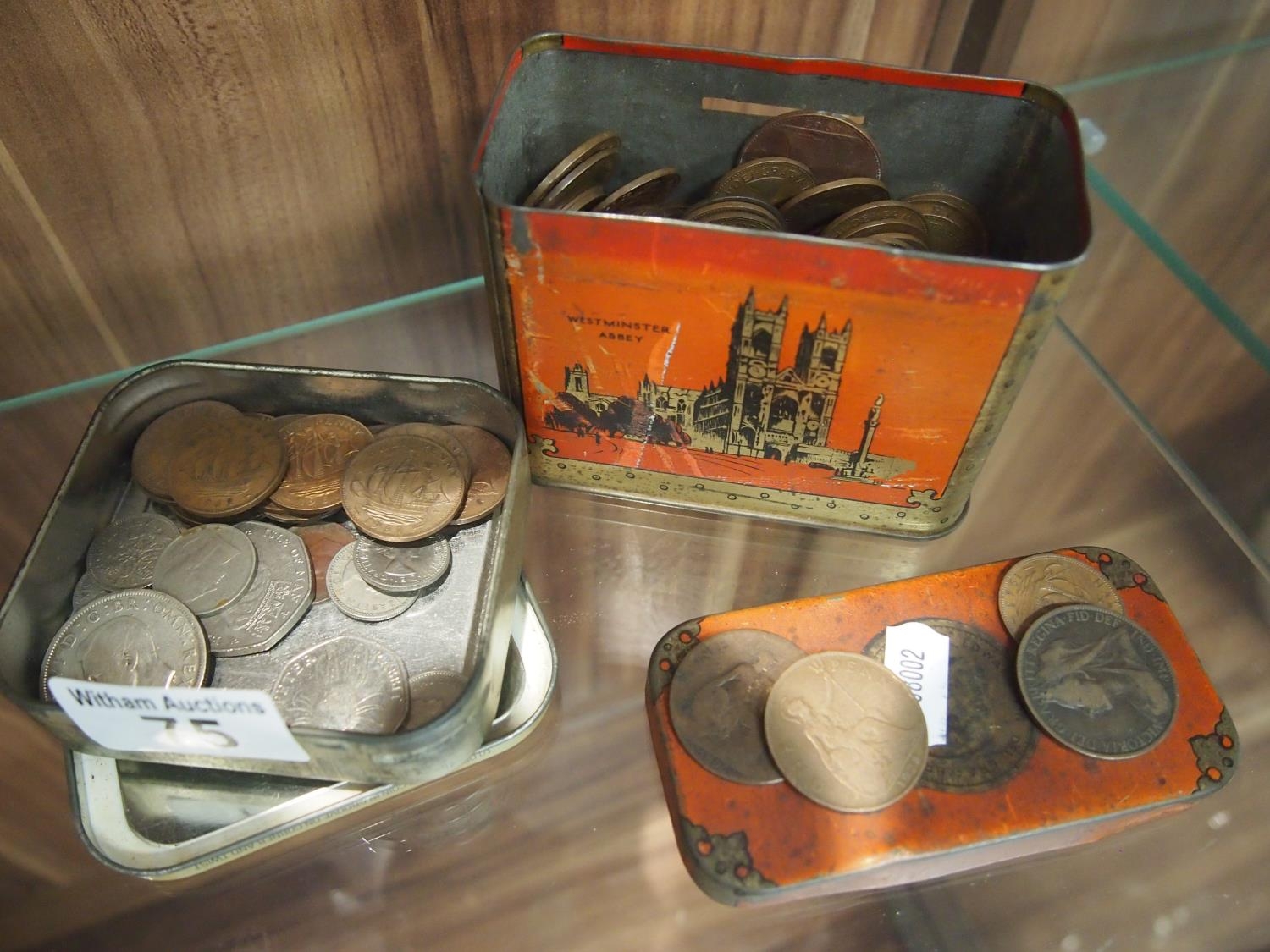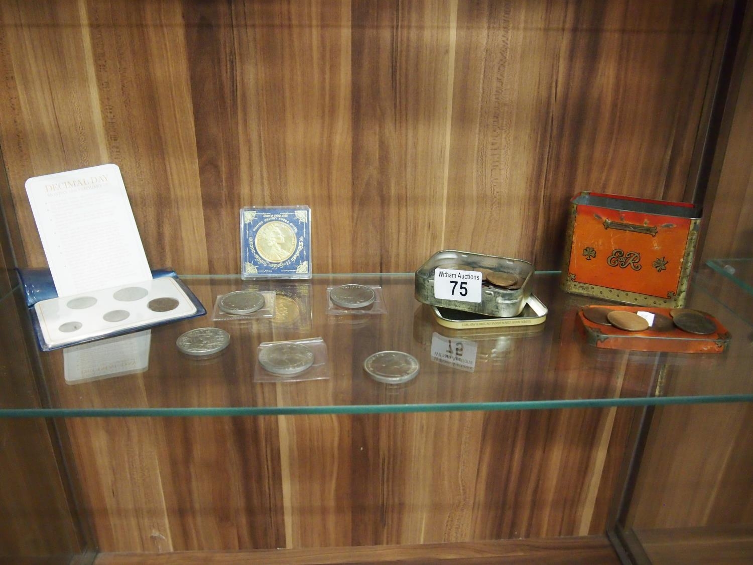Collection of coins including 1946 half-crown, Royal commemorative coins, half pennies, one pennies and others together with an Oxo 1930's Coronation Treasure Chest moneybox tin